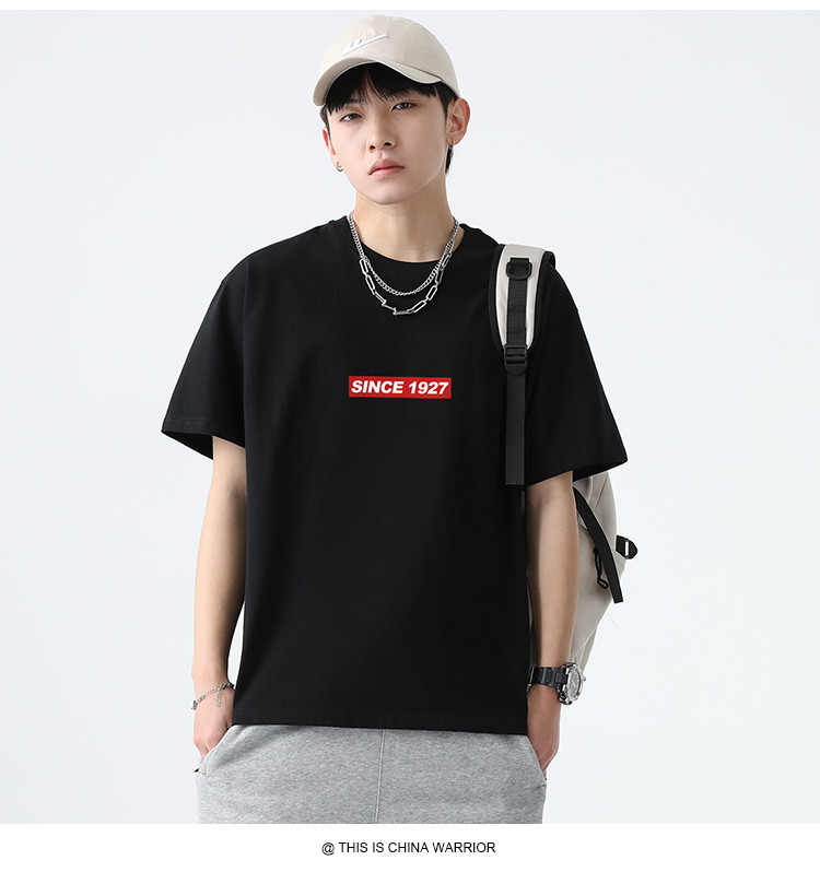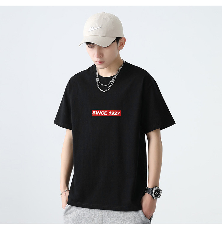 夏季短袖T恤男字母印花简约上衣百搭宽松舒适男式纯棉t恤 731091