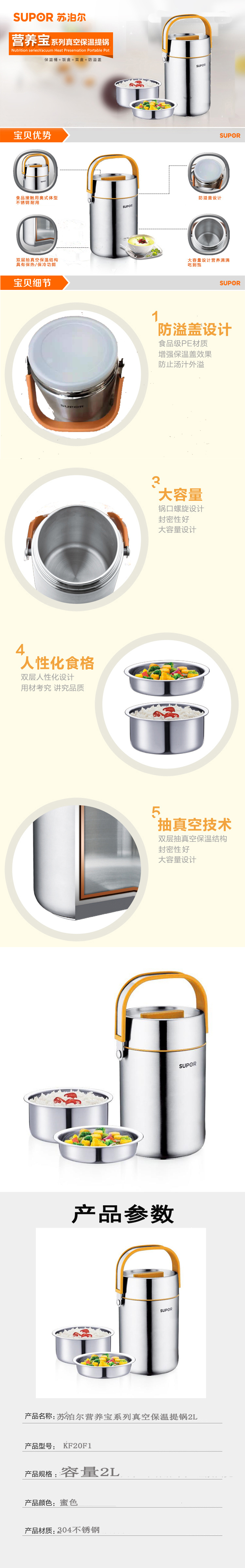 商品名称:SUPOR/苏泊尔2升营养宝系列真空保温提锅-蜜色KF20F1