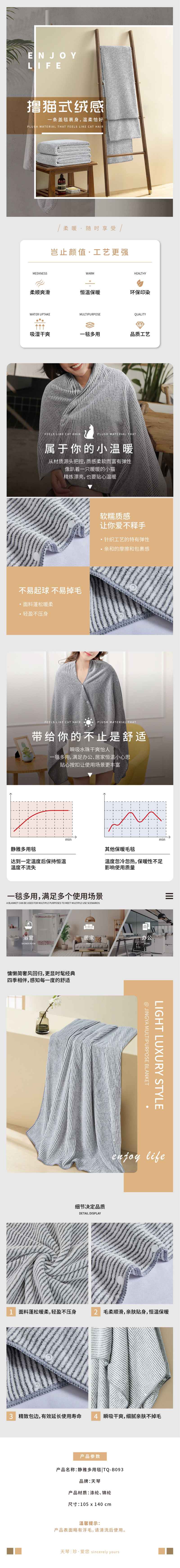 商品名称:TISEN/天琴静雅多用毯105*140cm 670g
