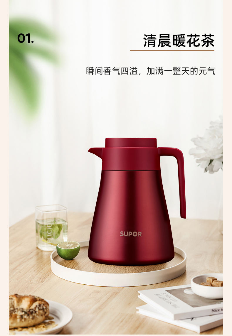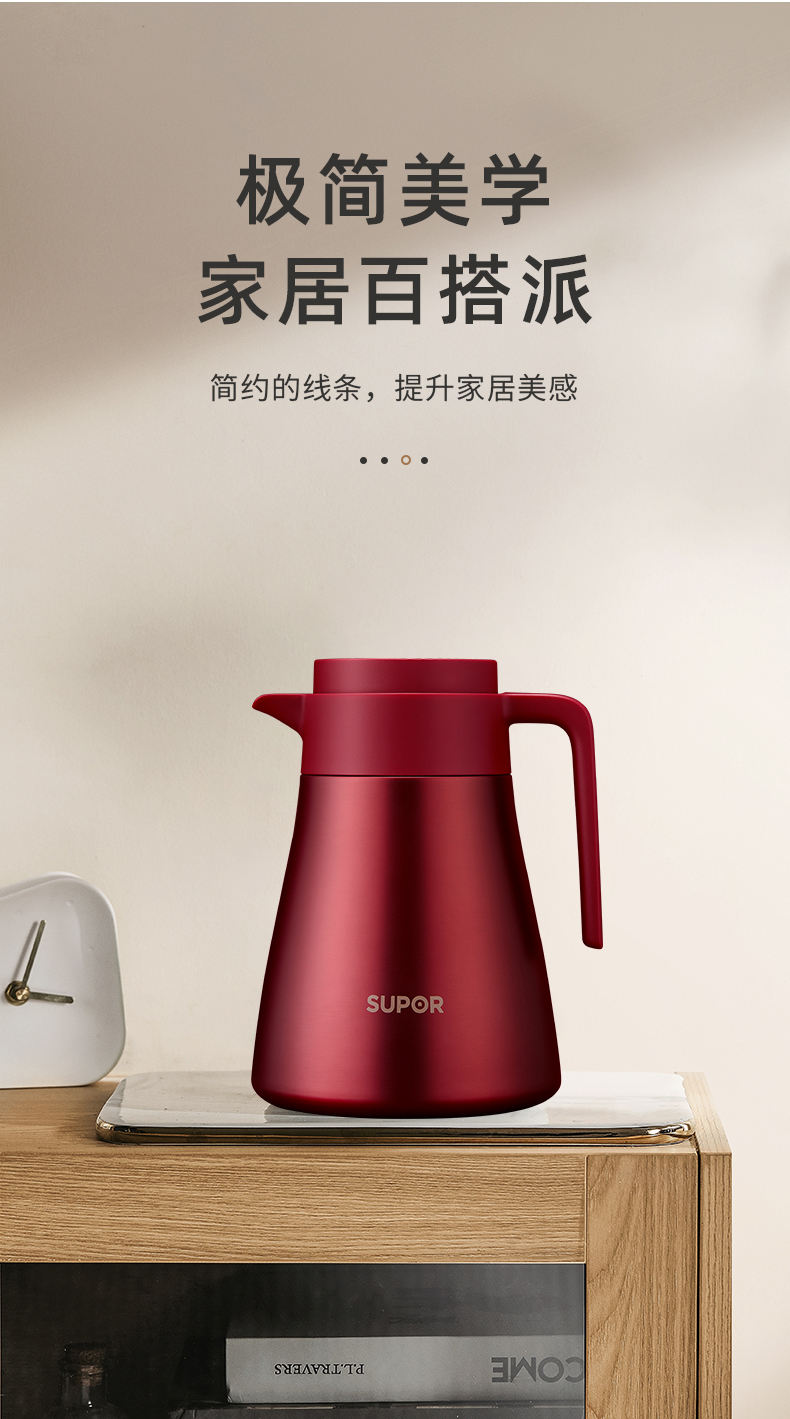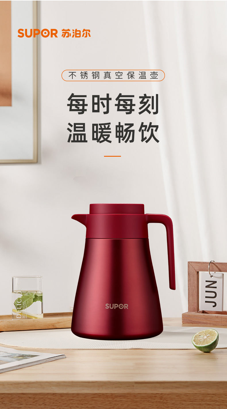 SUPOR/苏泊尔1.2升不锈钢真空保温壶-浆果红KC12HS50