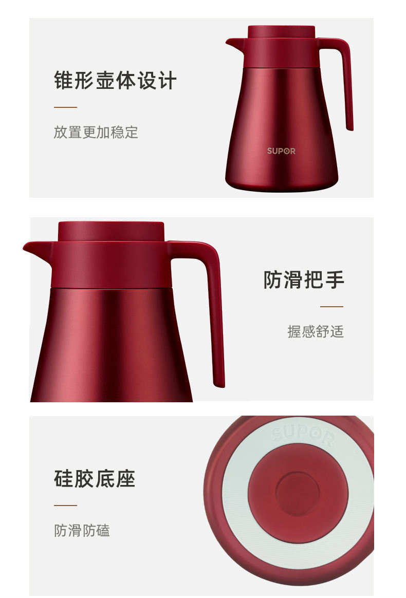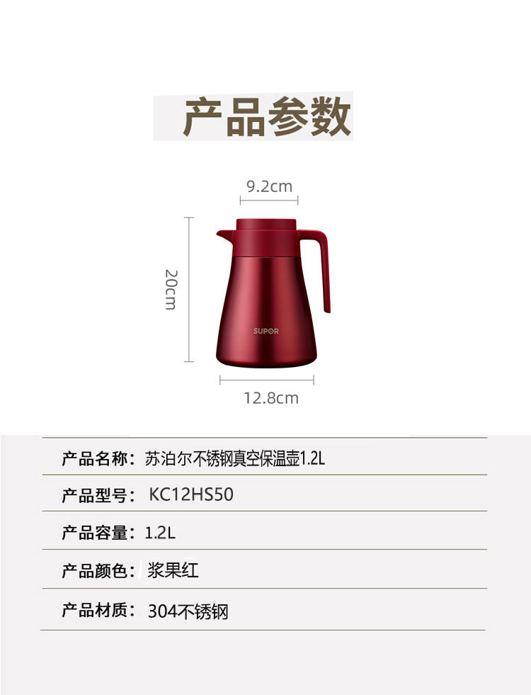 商品名称:SUPOR/苏泊尔1.2升不锈钢真空保温壶-浆果红KC12HS50