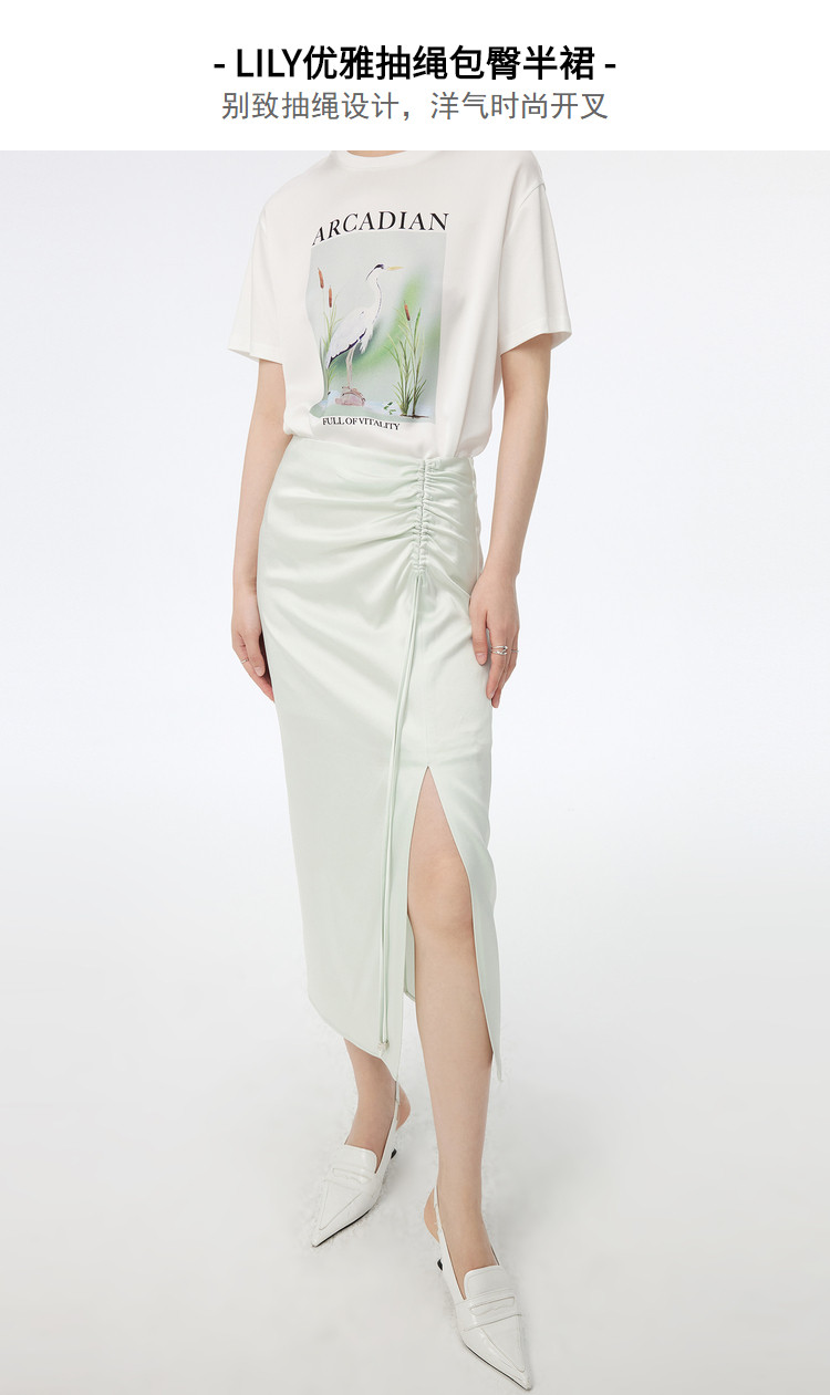 【薄荷曼波】春季别致不对称时尚抽绳洋气开叉高腰包臀裙半身裙 881755