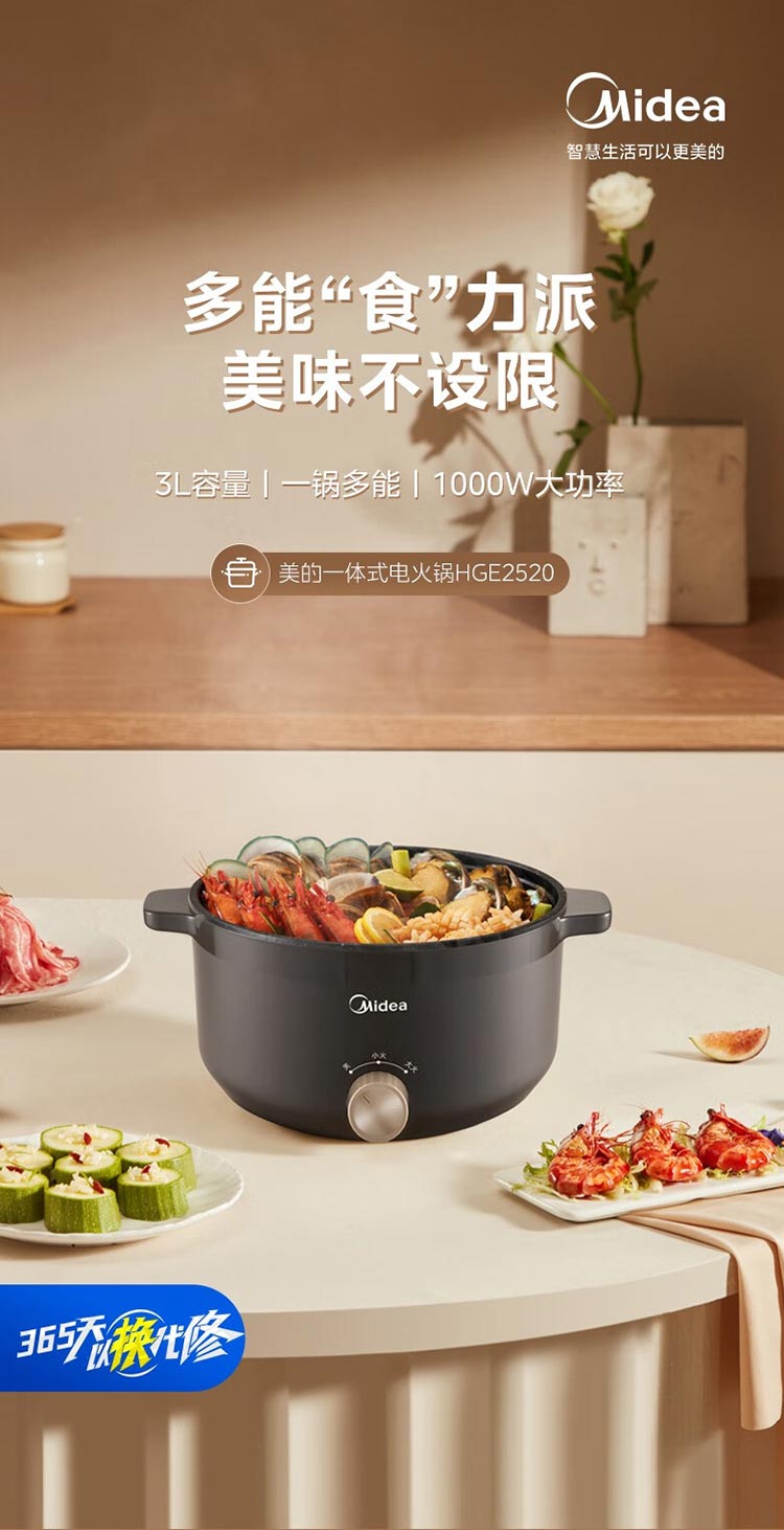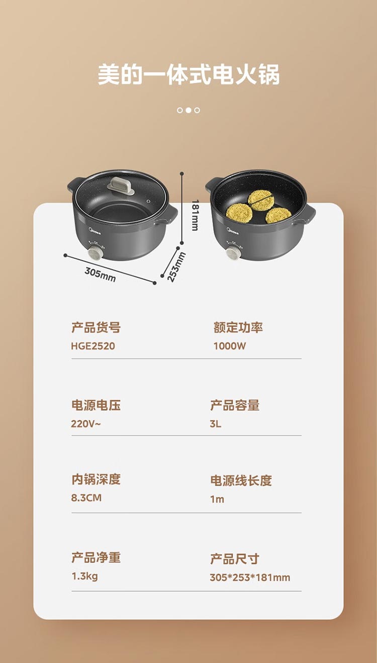 【京东/顺丰/德邦配送】Midea/美的3升一体式电火锅HGE2520