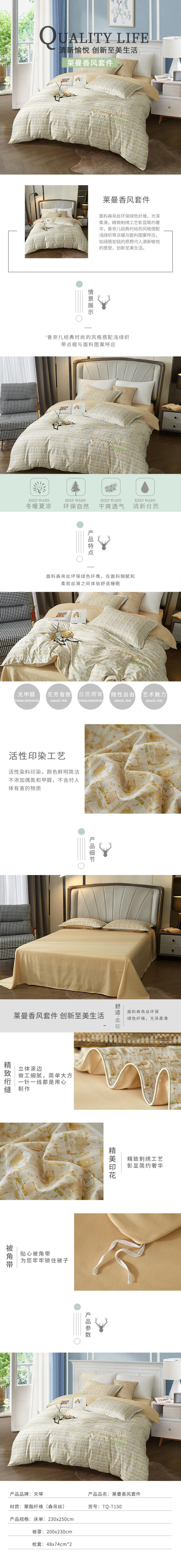 商品名称:TISEN/天琴莱曼香风森帛丝床品四件套 200*230cm
