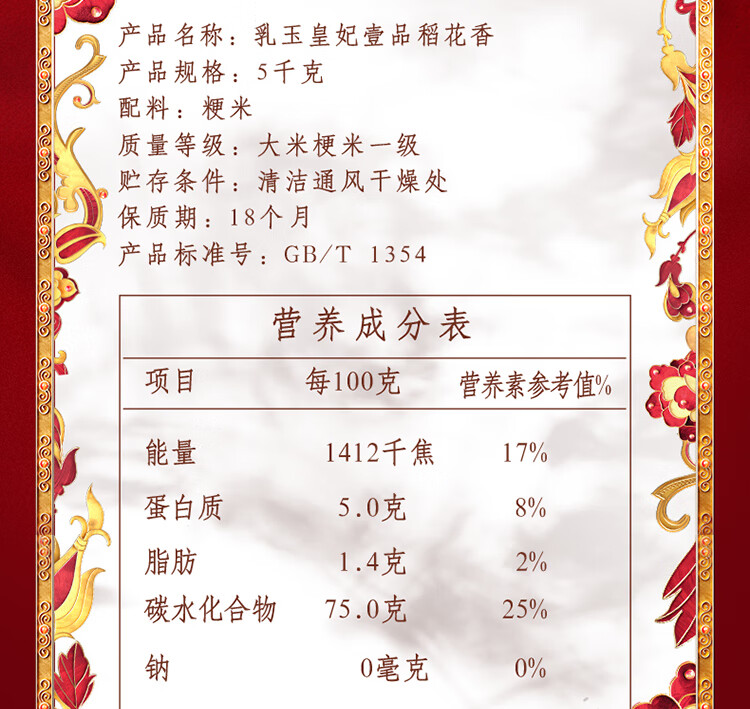商品名称:【京东/顺丰配送】金龙鱼乳玉皇妃壹品稻花香粳米5kg