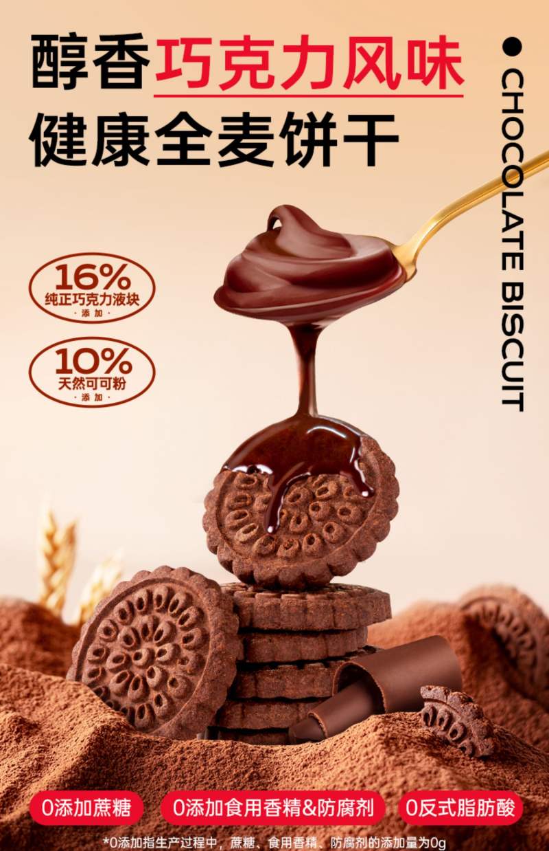 QEEWOO/七年五季全麦巧克力饼干100g*4袋