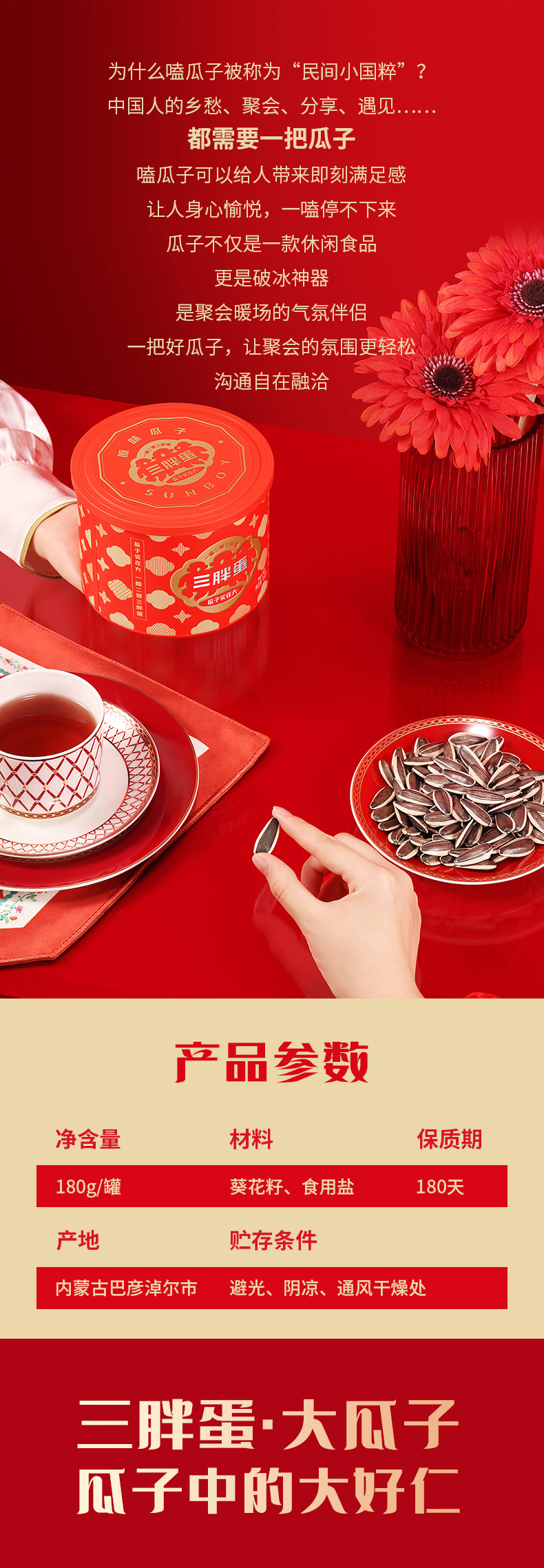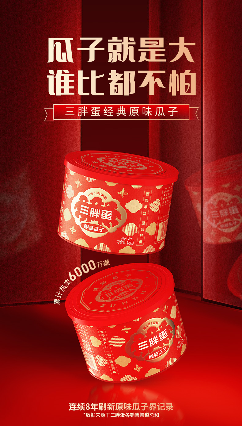 商品名称:三胖蛋经典葵花大瓜子180g*2罐