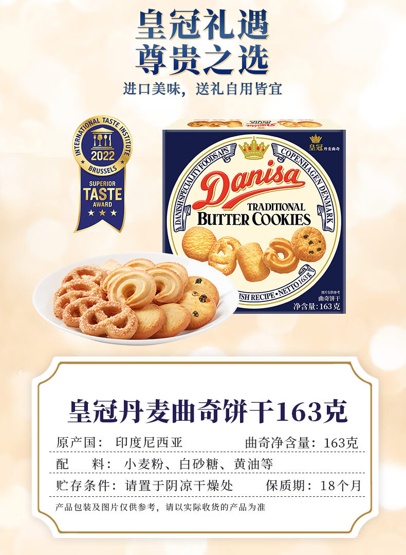 商品名称:Danisa/皇冠印度尼西亚进口丹麦曲奇饼干163g*6盒