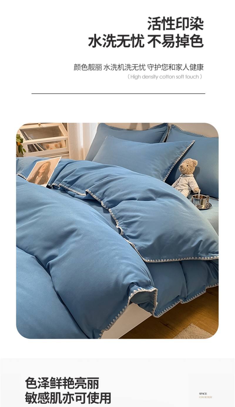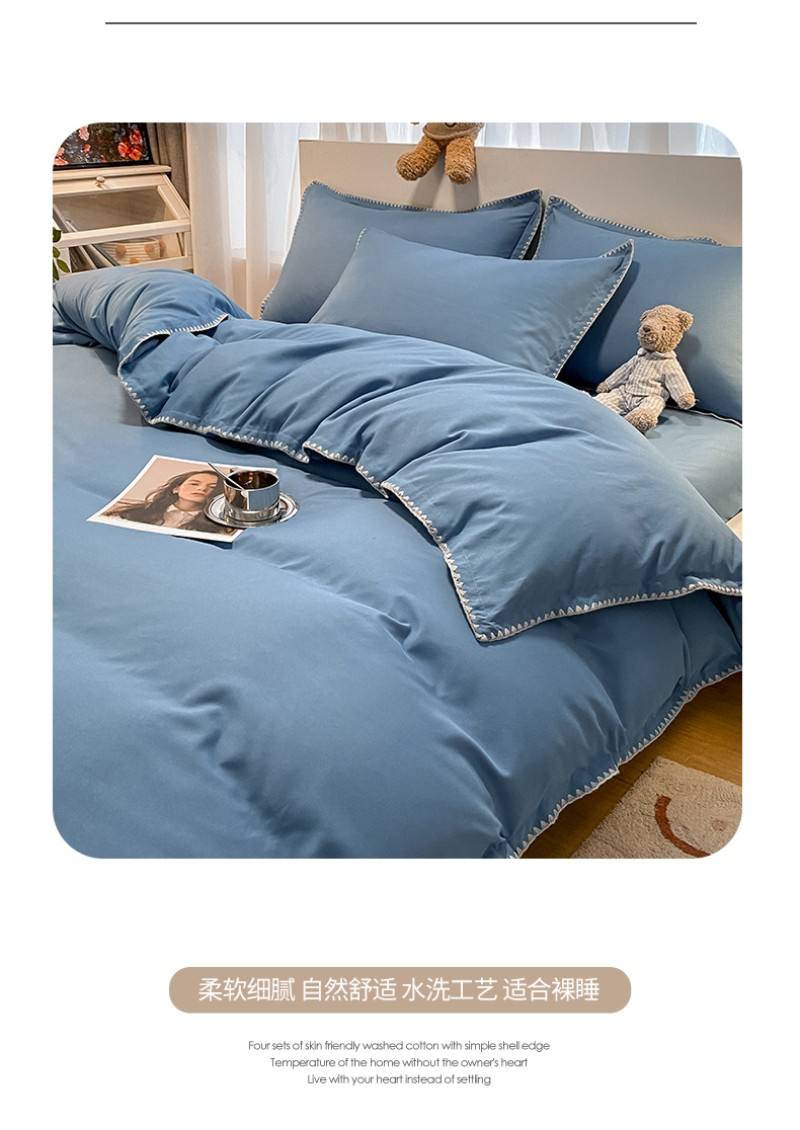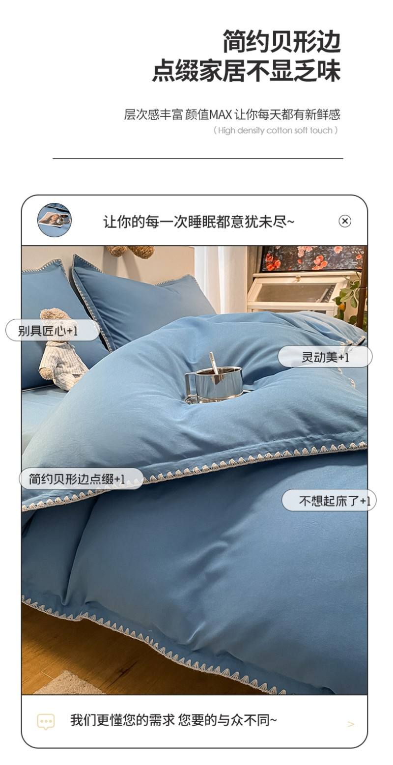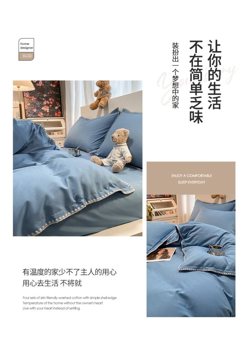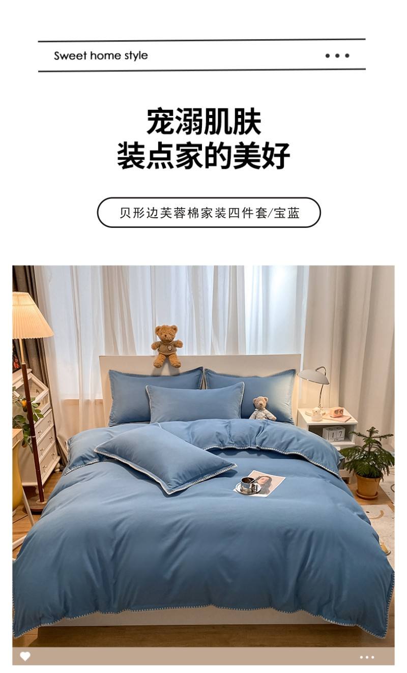BeGaMan/彼加曼贝形边芙蓉棉家装床品四件套-宝蓝200*230cm