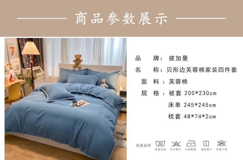 商品名称:BeGaMan/彼加曼贝形边芙蓉棉家装床品四件套-宝蓝200*230cm