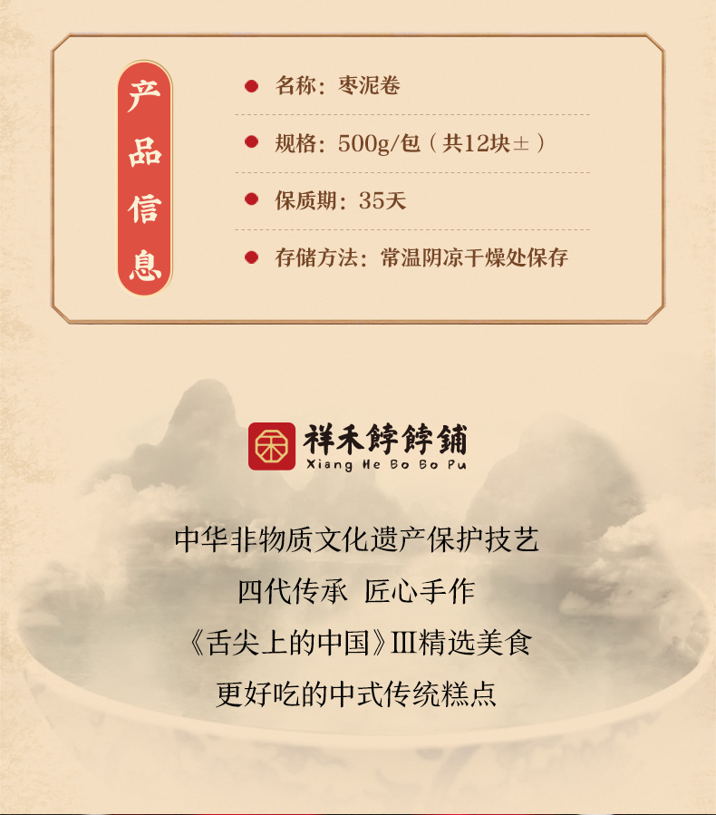 商品名称:祥禾饽饽铺枣泥卷12块约500g