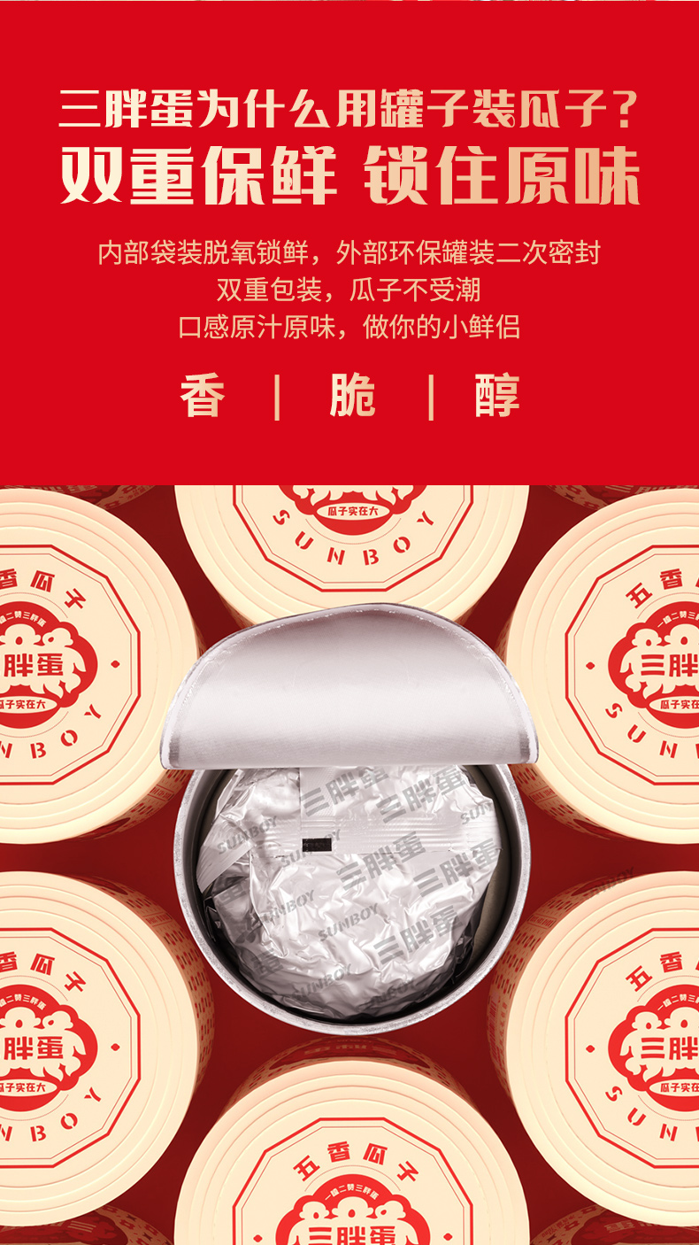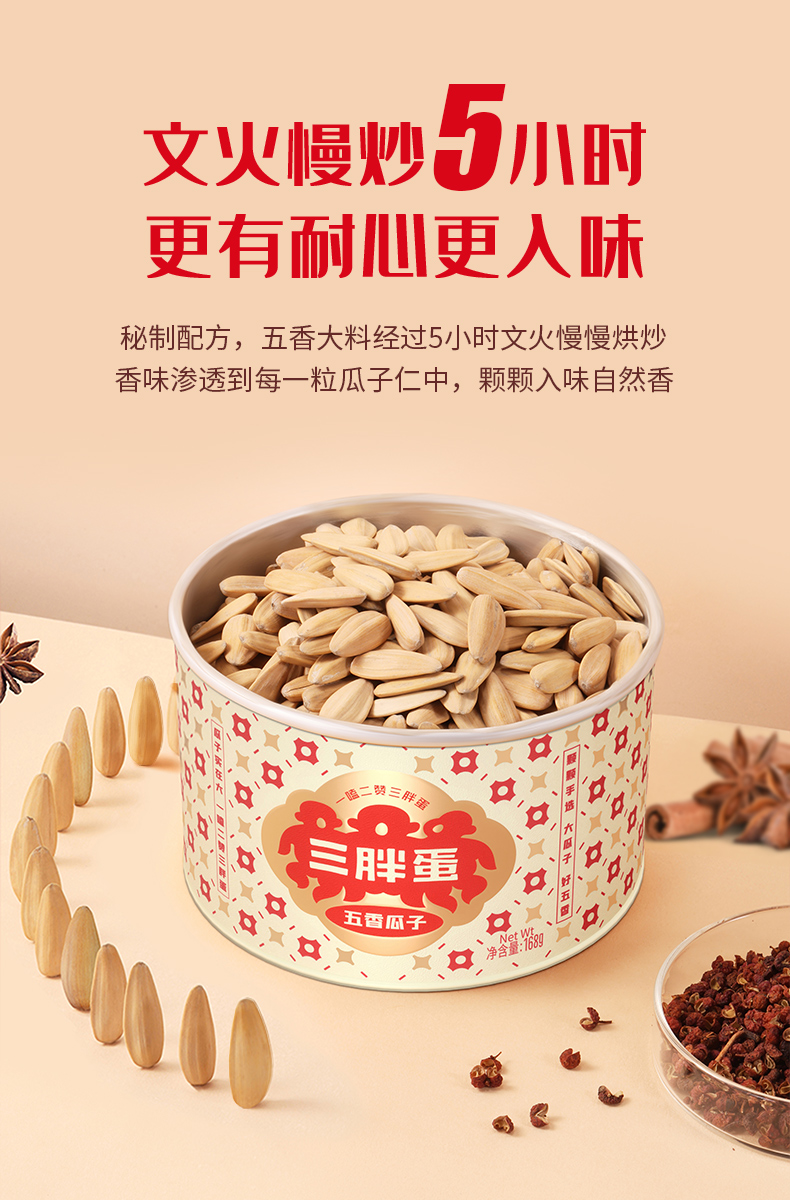 商品名称:三胖蛋新五香葵花瓜子168g*2罐