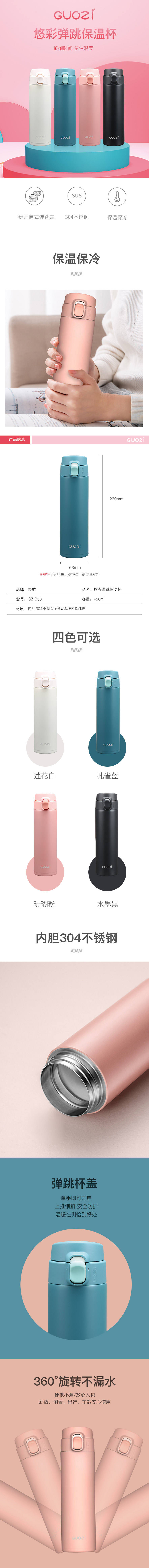 商品名称:GUOZI/果兹450毫升悠彩弹跳保温杯GZ-B33