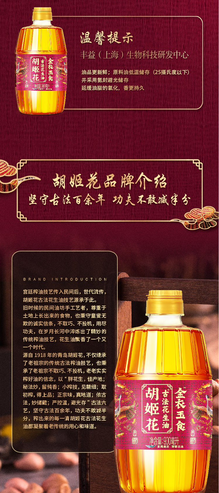 商品名称:胡姬花金衣玉食古法花生油900ml