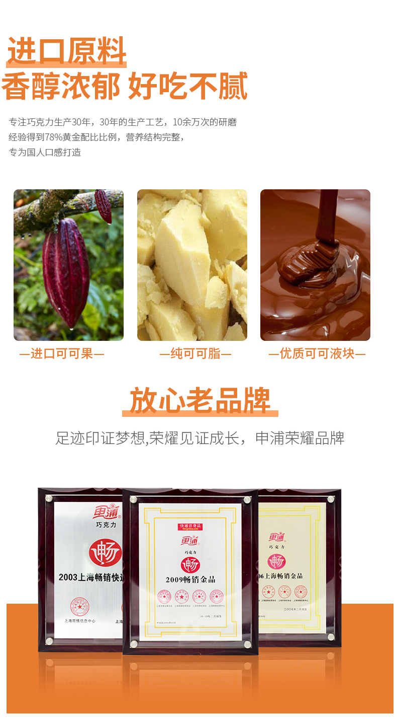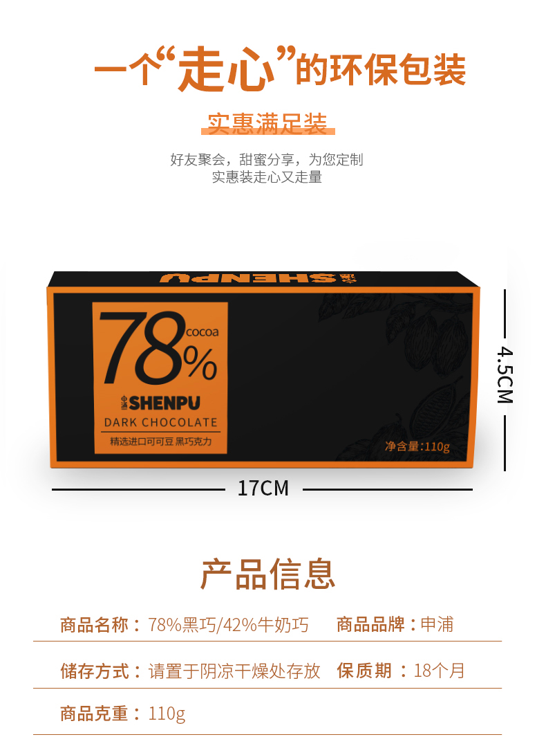 商品名称:申浦精选进口可可豆巧克力110g*2盒