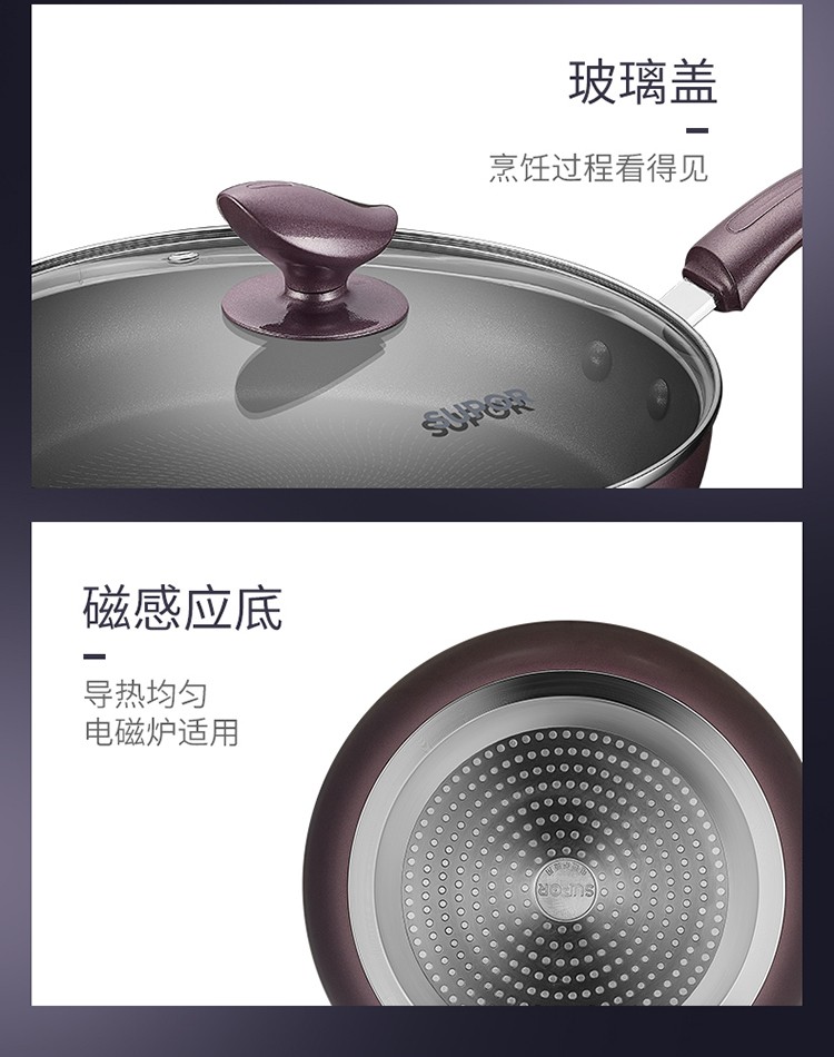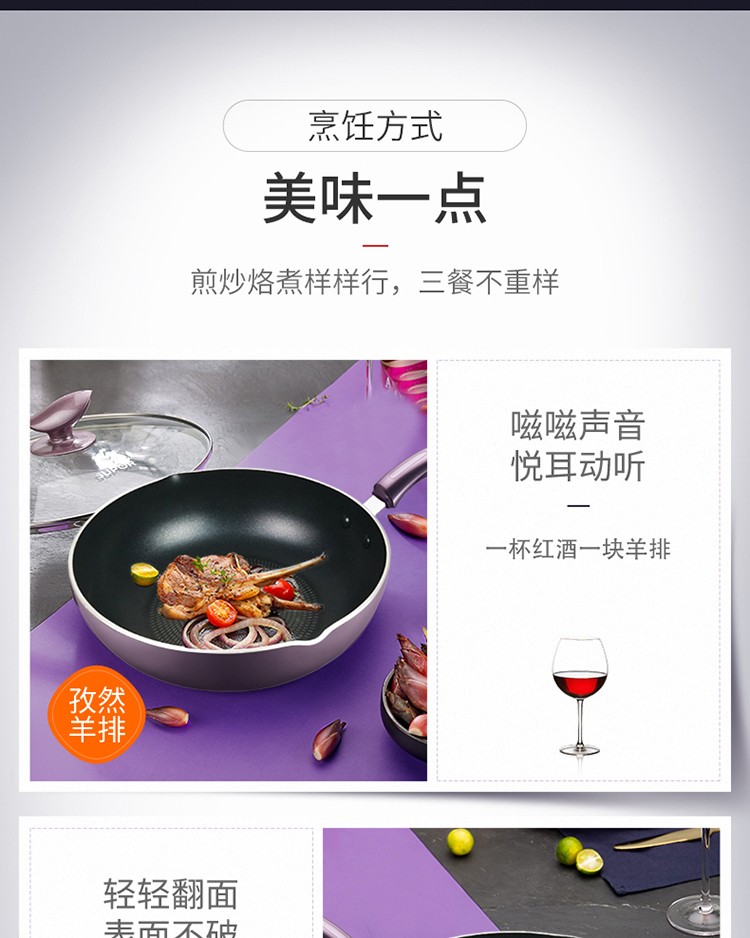 商品名称:SUPOR/苏泊尔火红点带盖煎炒锅-紫色 PJ26R4 26cm