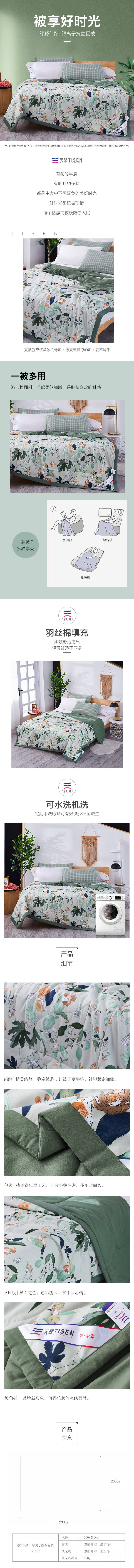 商品名称:TISEN/天琴绿野仙踪银离子抗菌夏被200*230cm 550g
