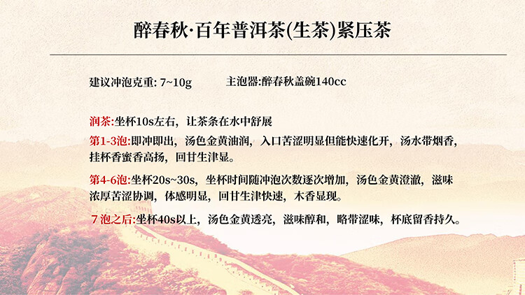 商品名称:天颐醉春秋百年普洱紧压茶-生茶357g