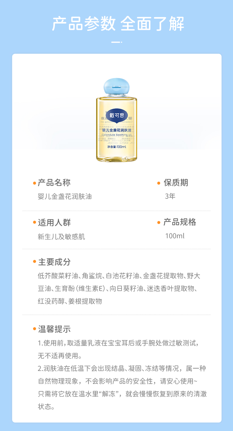 商品名称:Dexter/戴可思婴儿金盏花保湿润肤油100ml