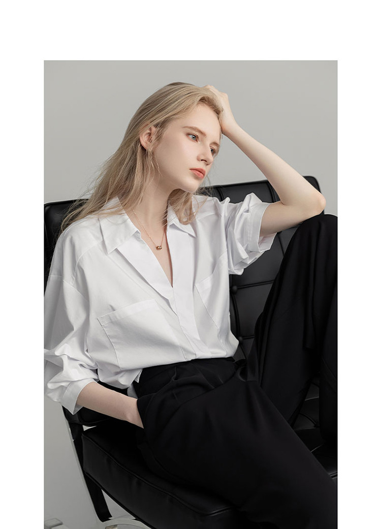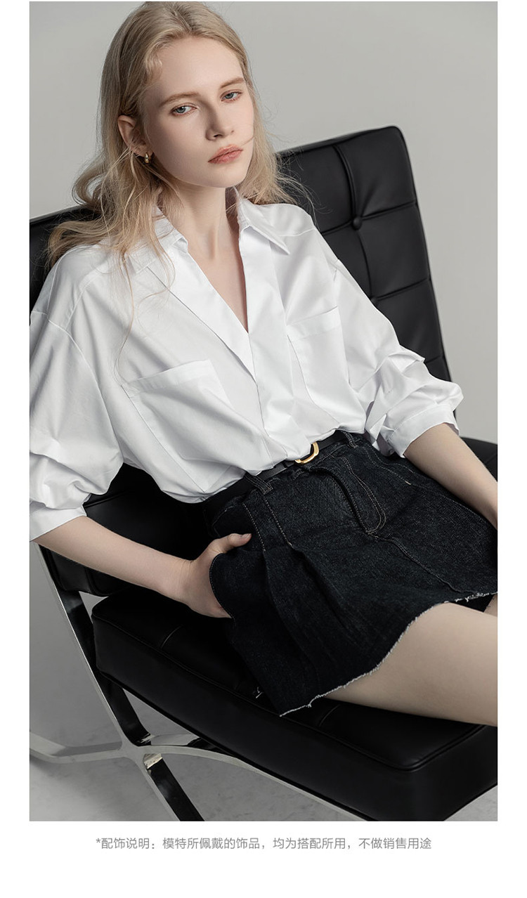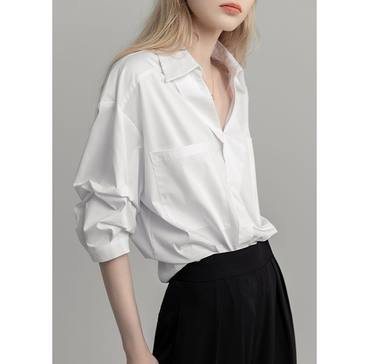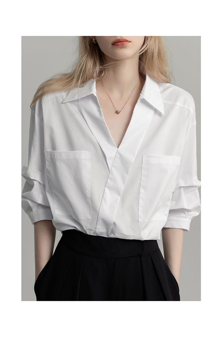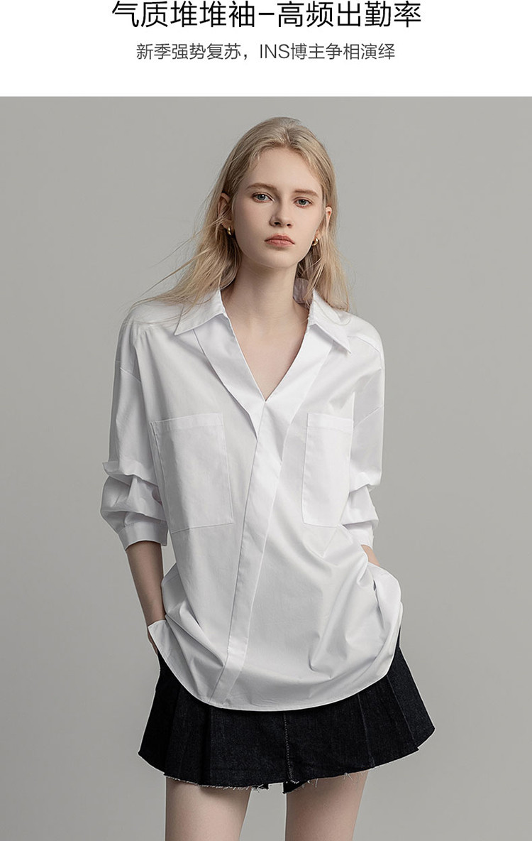 商品名称:【高智通勤】夏静奢书卷气衬衫V字翻领堆堆袖舒适藏肉衬衣女上衣 258689
