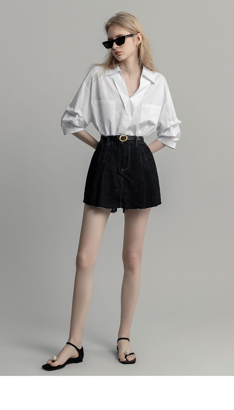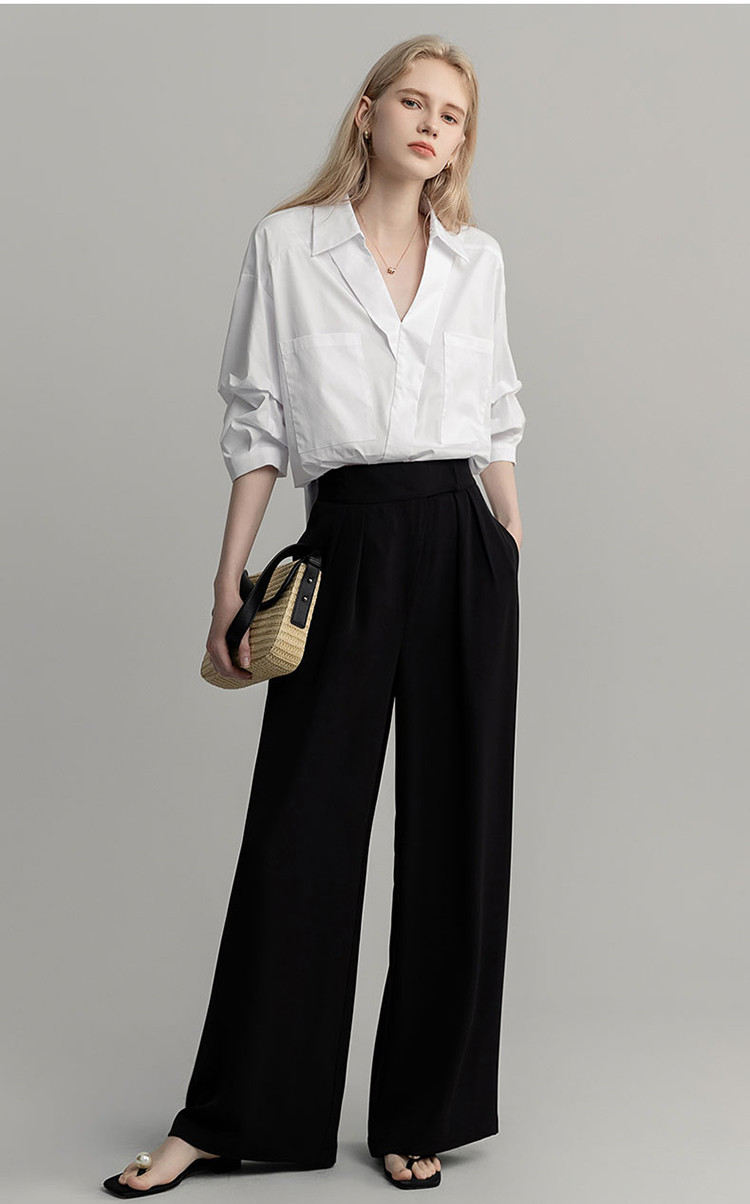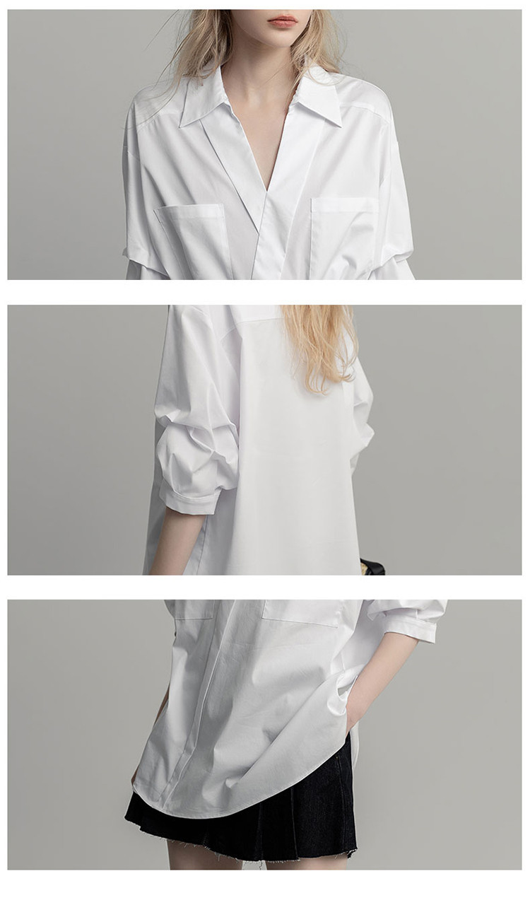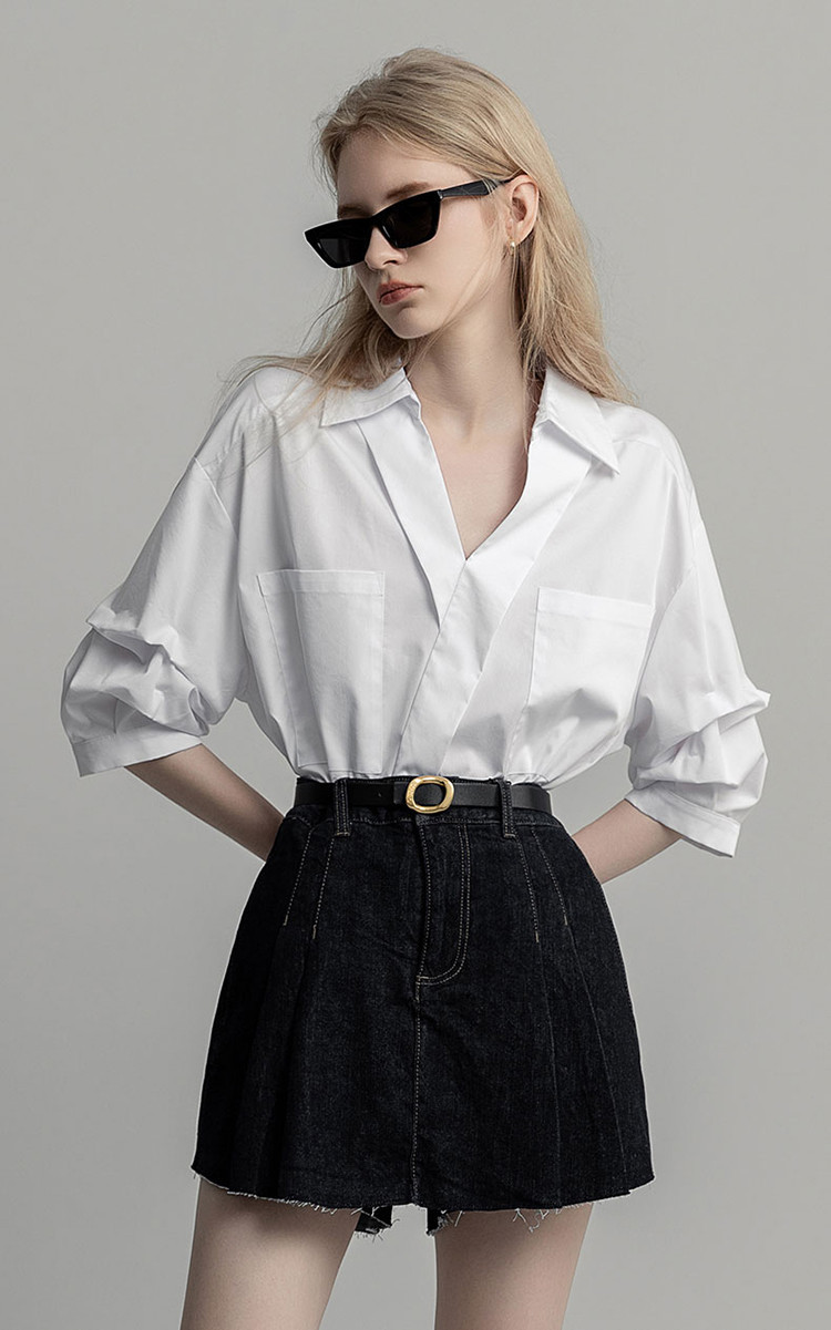 商品名称:【高智通勤】夏静奢书卷气衬衫V字翻领堆堆袖舒适藏肉衬衣女上衣 258689