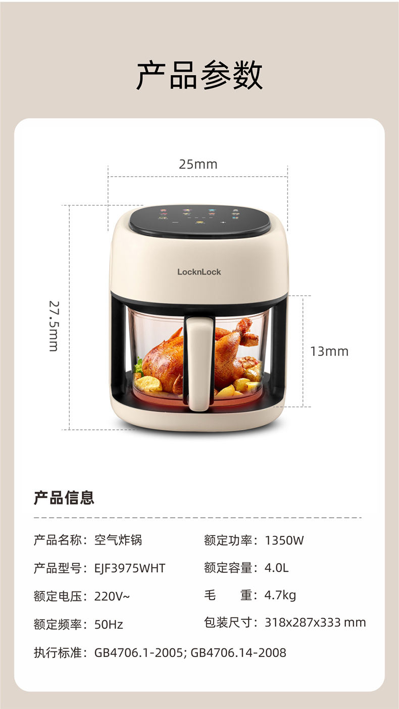 商品名称:LOCK&LOCK/乐扣乐扣4升多功能空气炸锅EJF3975WHT