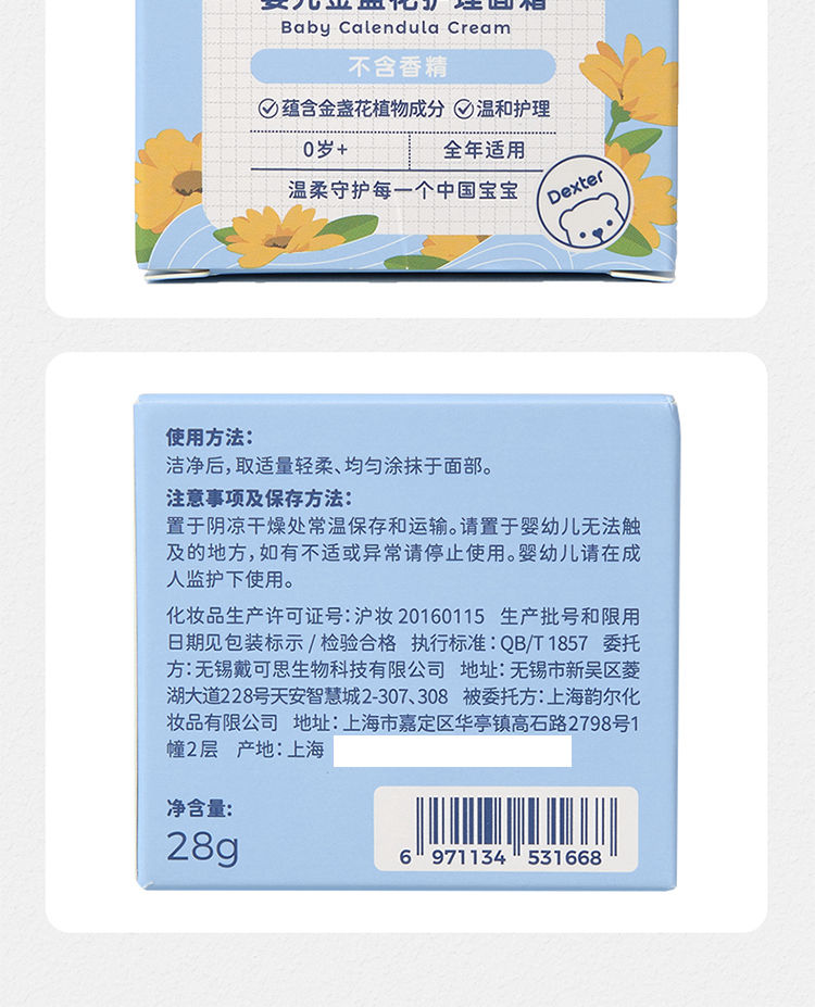 商品名称:Dexter/戴可思无香型金盏花护理面霜28g*2瓶