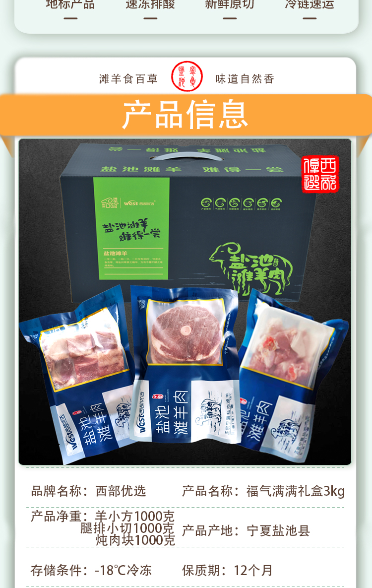 商品名称:【京东配送】西部优选盐池滩羊福气满满羊肉礼盒3kg