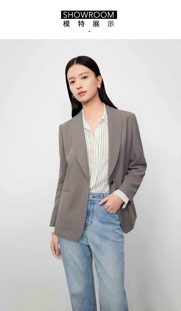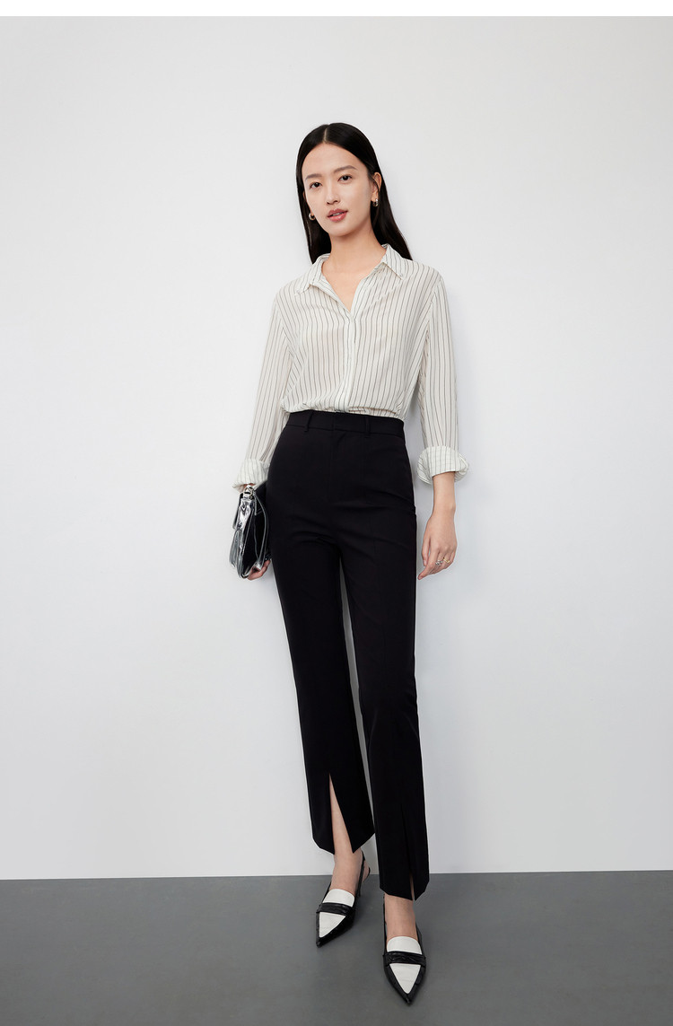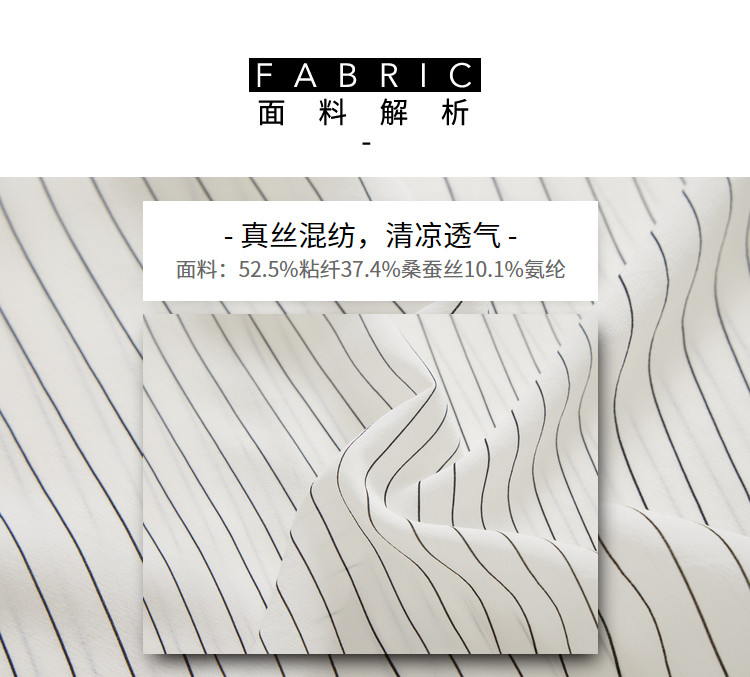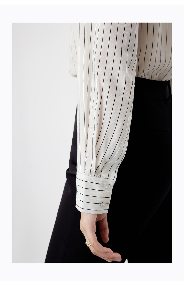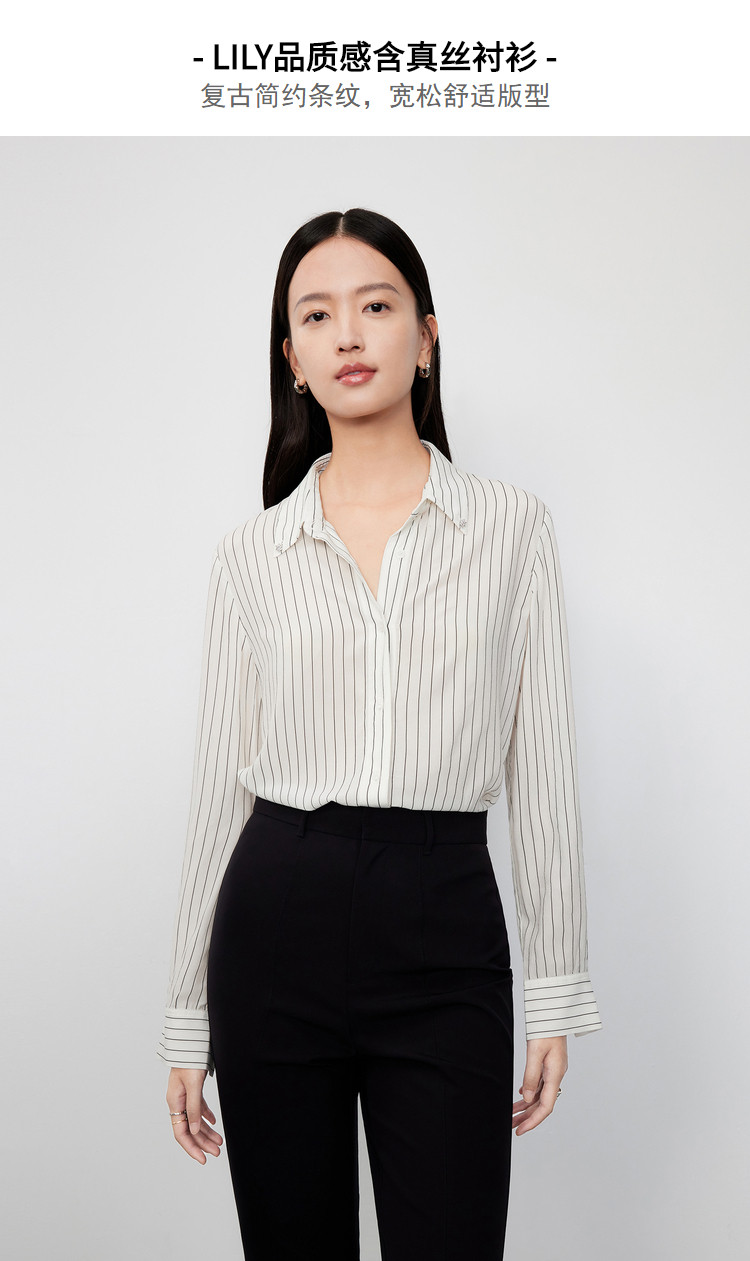 商品名称:春季含真丝光泽感气质通勤复古条纹宽松垂坠感衬衫 753435
