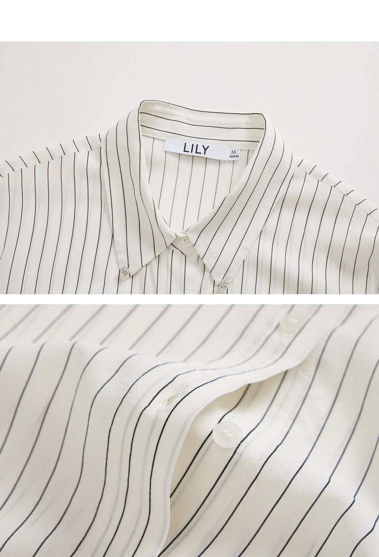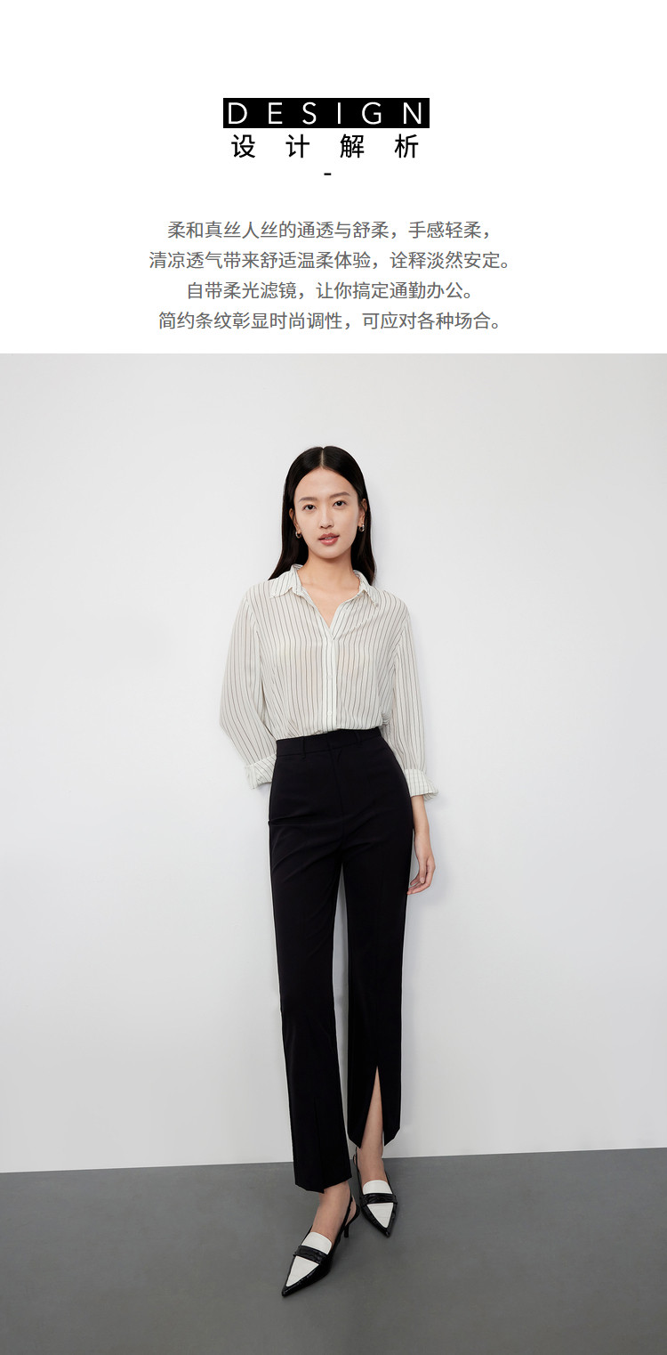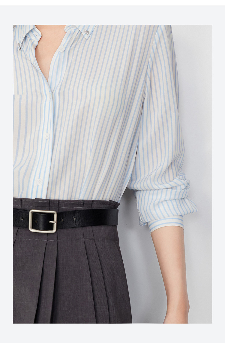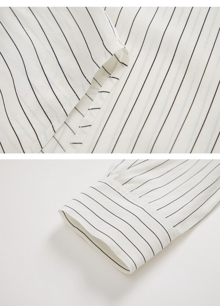 春季含真丝光泽感气质通勤复古条纹宽松垂坠感衬衫 753435