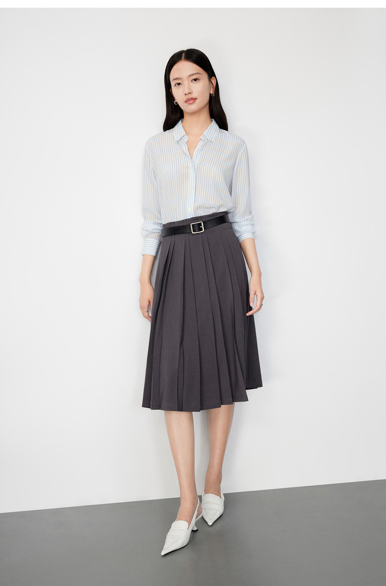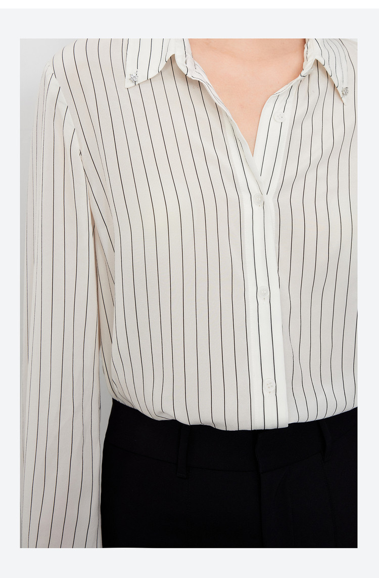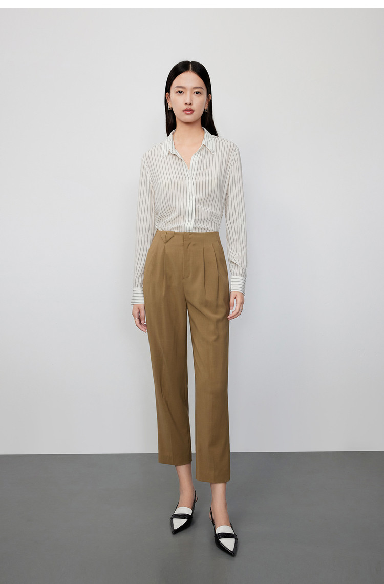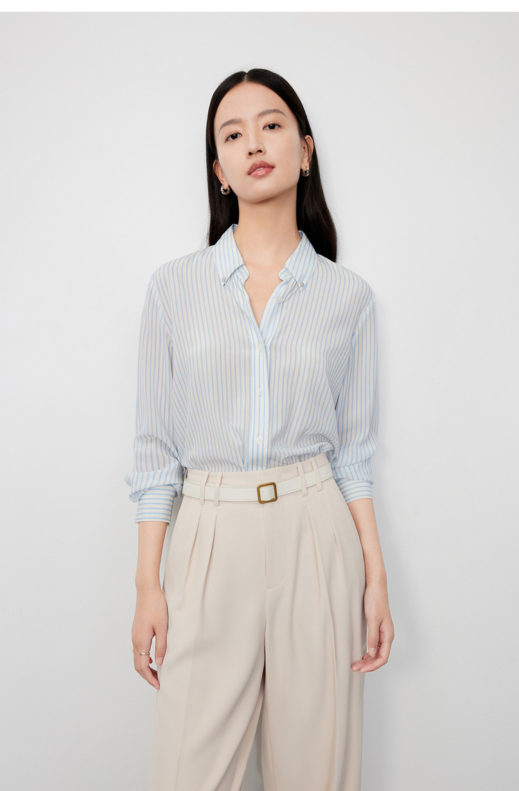 春季含真丝光泽感气质通勤复古条纹宽松垂坠感衬衫 753435