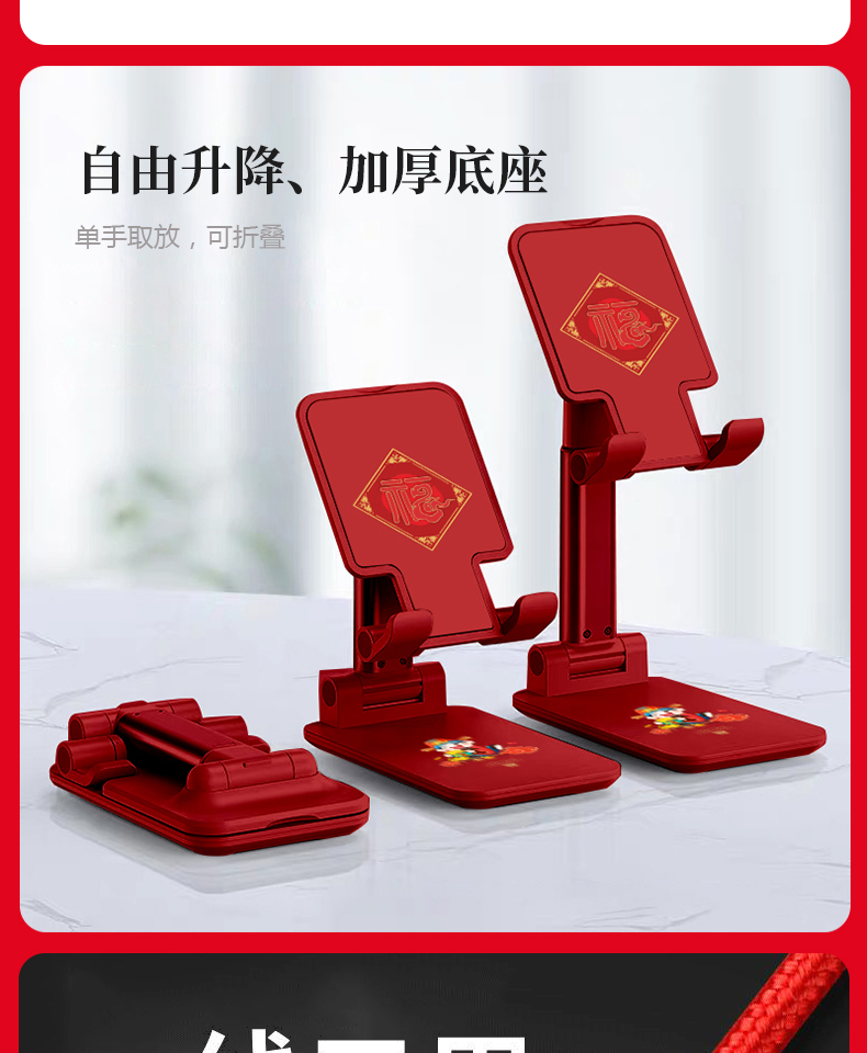 颐电财神数码手机支架充电线挂绳三件套-红色AD-3523