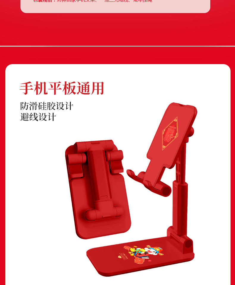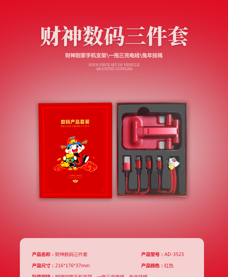 商品名称:颐电财神数码手机支架充电线挂绳三件套-红色AD-3523