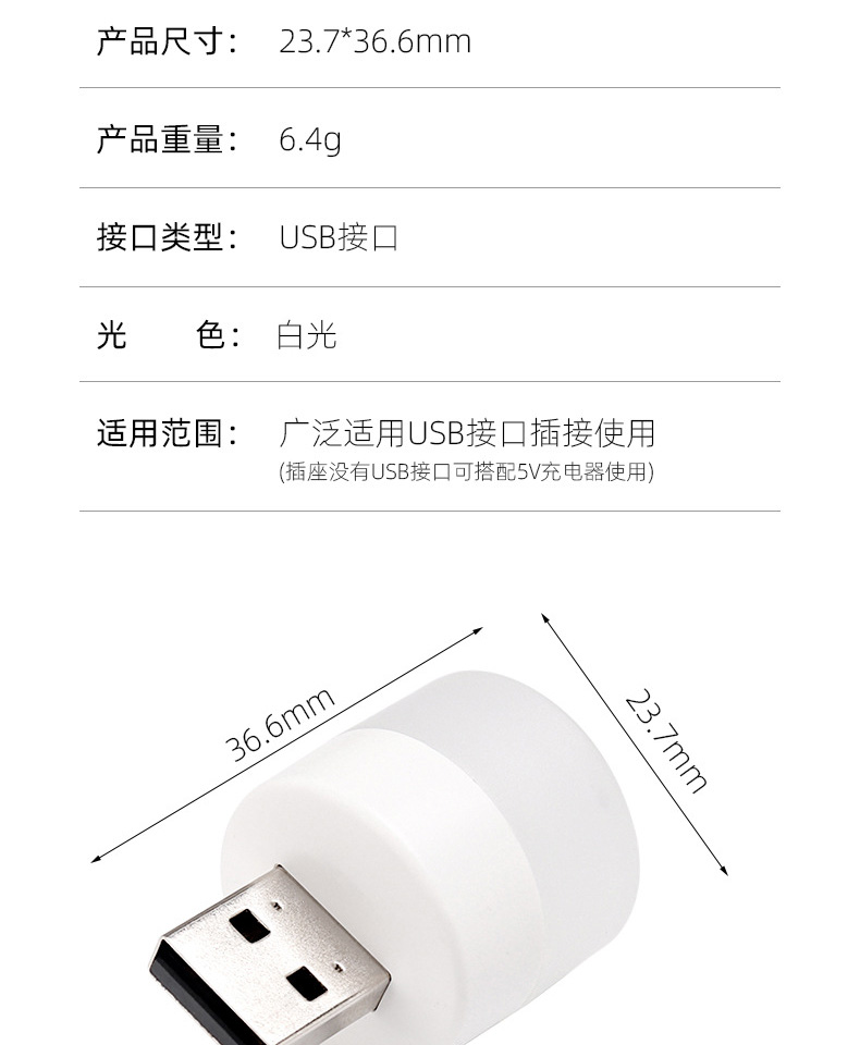 商品名称:颐电USB白光随身小夜灯6个组合装AD-0046
