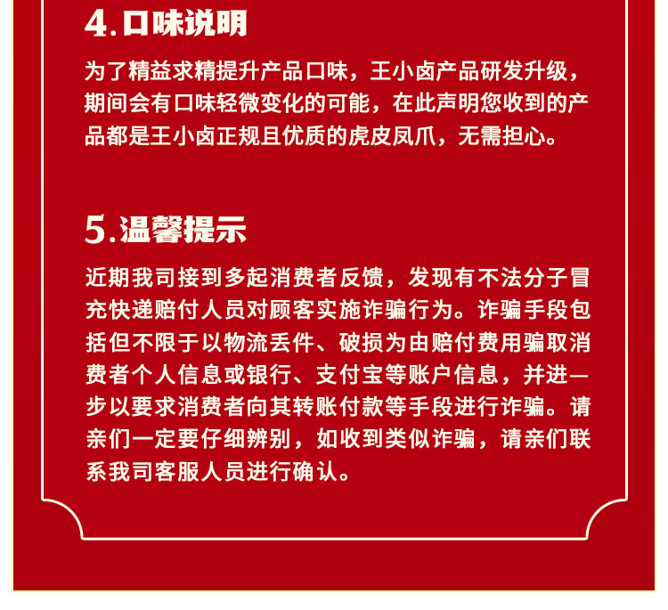 商品名称:王小卤虎皮凤爪68g*4袋 香辣味