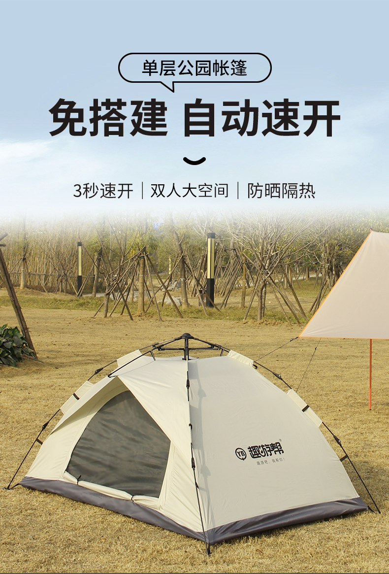 商品名称:趣游帮两门单层公园帐篷-云雾灰Y046