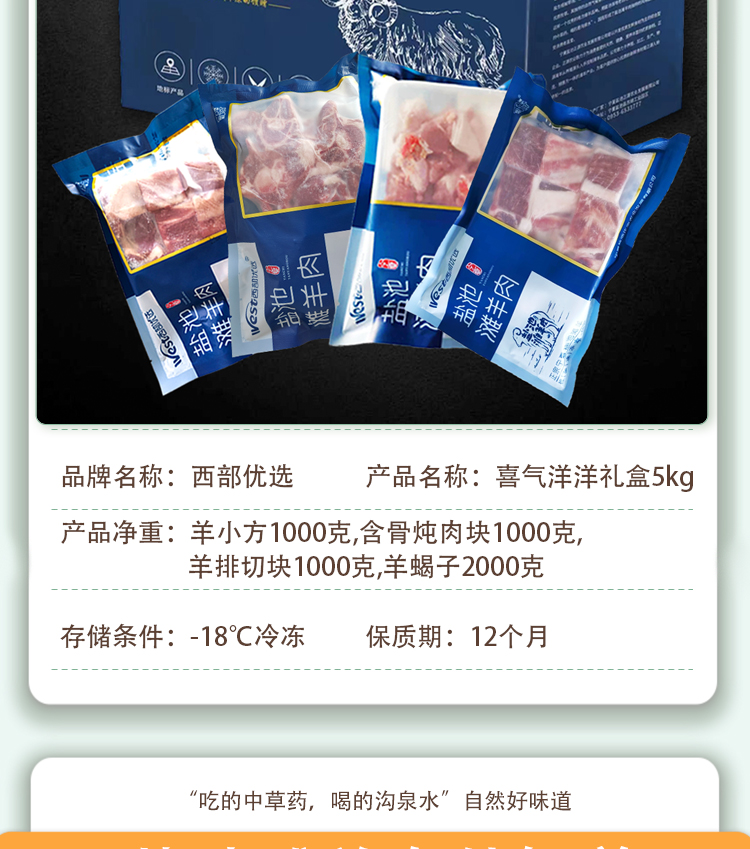 商品名称:【京东配送】西部优选盐池滩羊喜气洋洋羊肉礼盒5kg