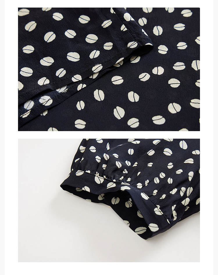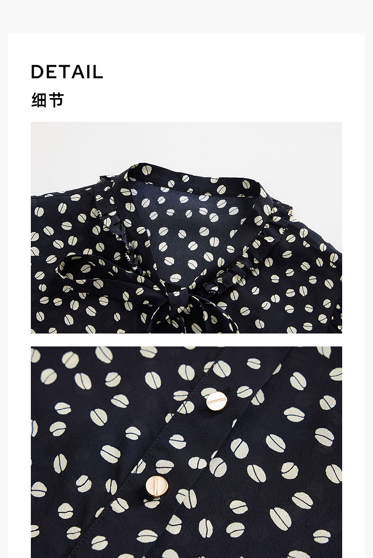 春季含真丝趣味印花别致飘带时尚通勤款泡泡袖衬衫 844891