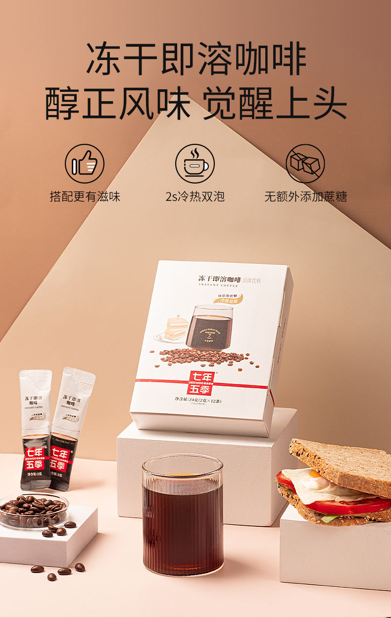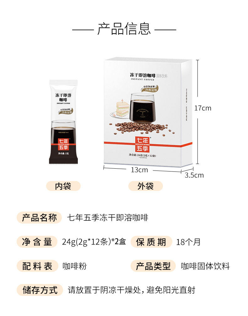 商品名称:QEEWOO/七年五季冻干即溶咖啡24g*2盒
