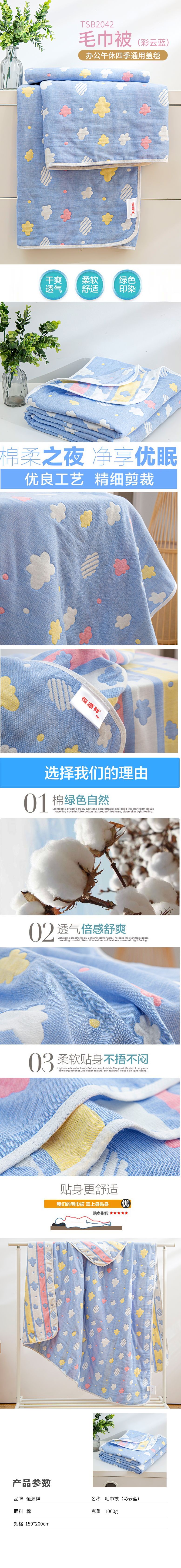 商品名称:恒源祥彩云蓝全棉毛巾被150*200cm 1000g