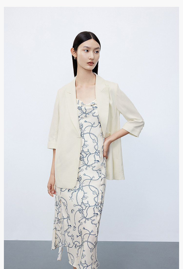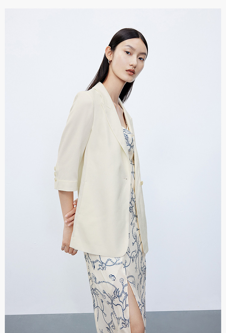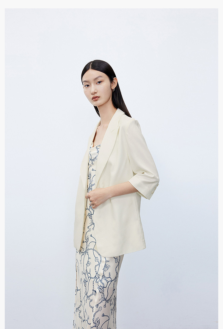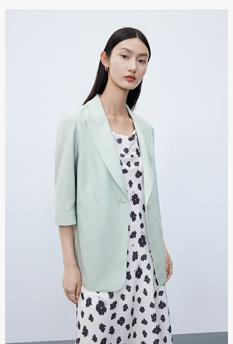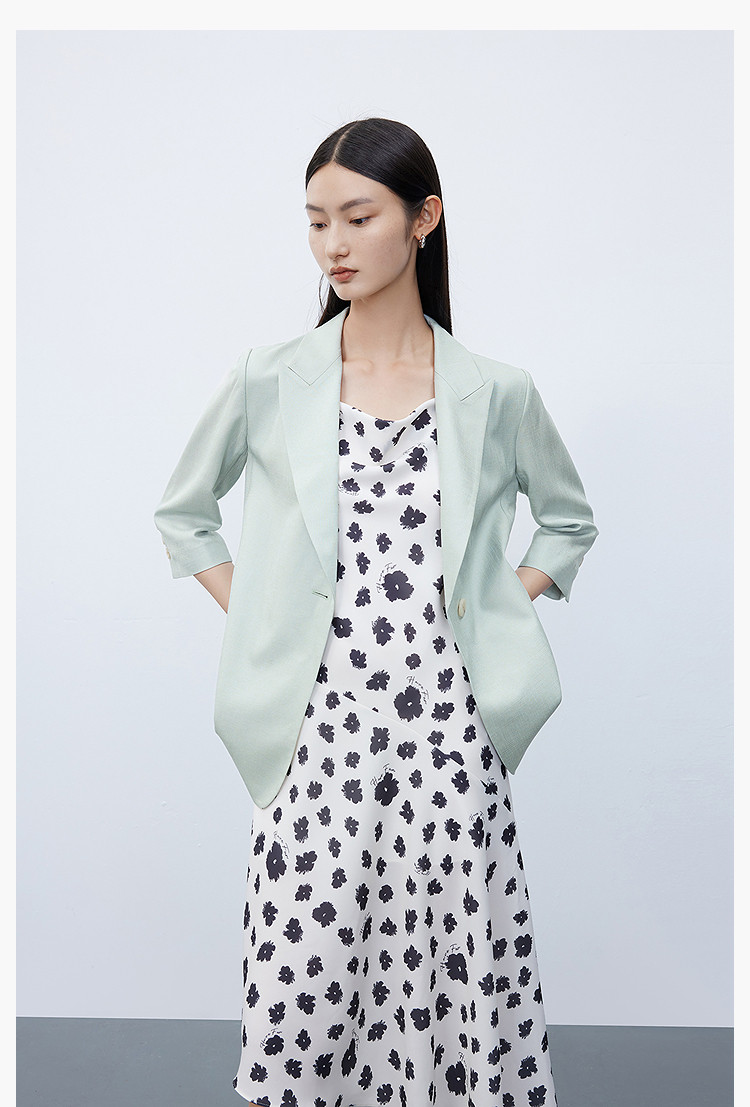 春季西装女气质通勤简约一粒扣垂坠感醋酸西装外套 888347
