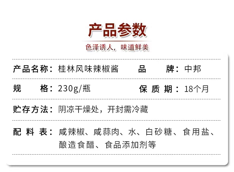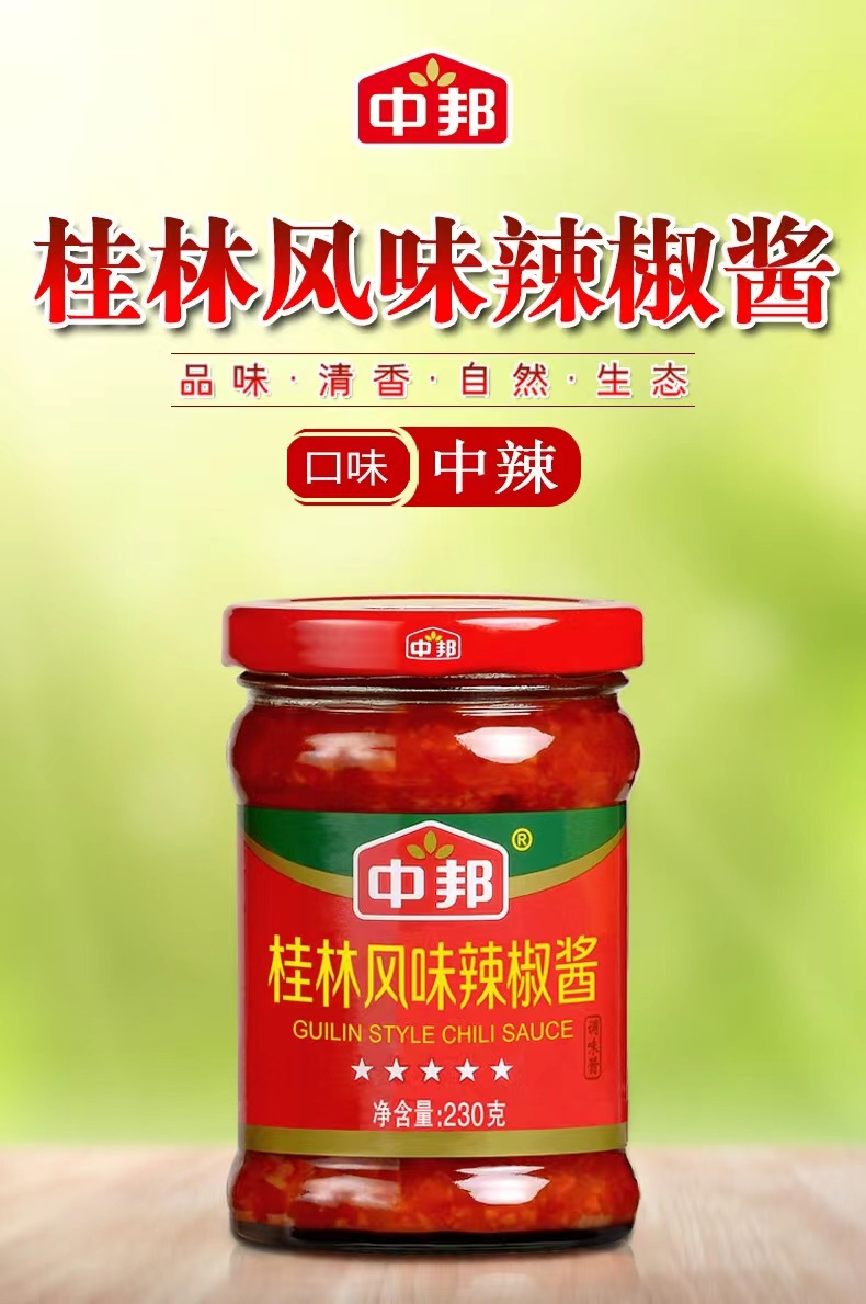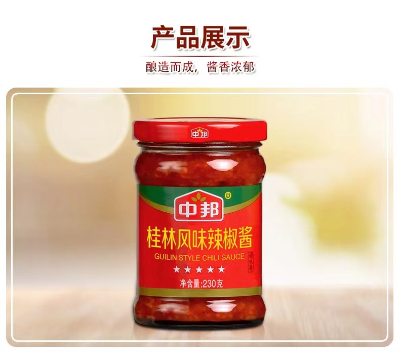 商品名称:中邦桂林风味辣椒酱230g*3瓶