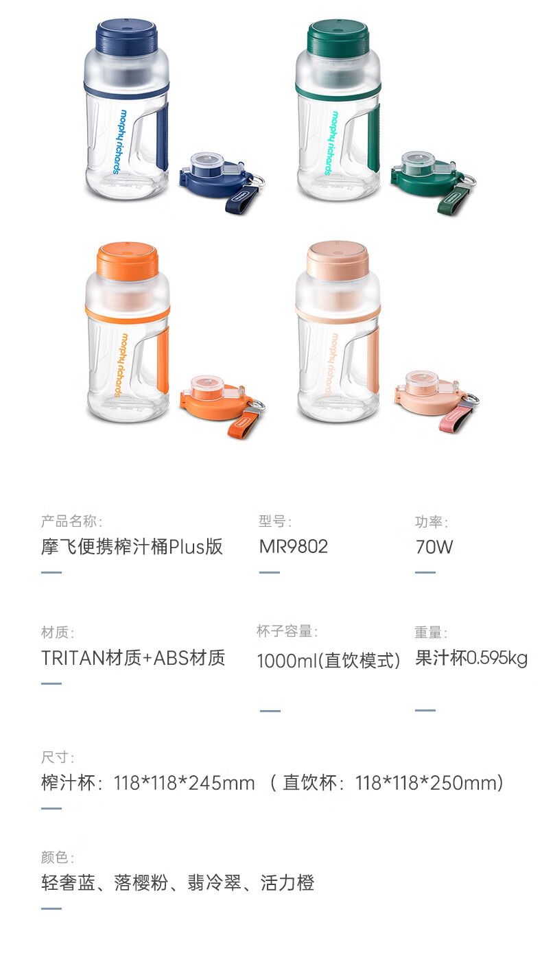 商品名称:Morphy Richards/摩飞1升便携榨汁桶Plus版MR9802