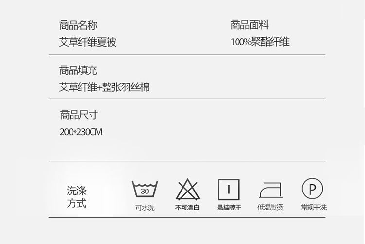商品名称:PLOVER/啄木鸟艾草纤维夏被200*230cm 1400g