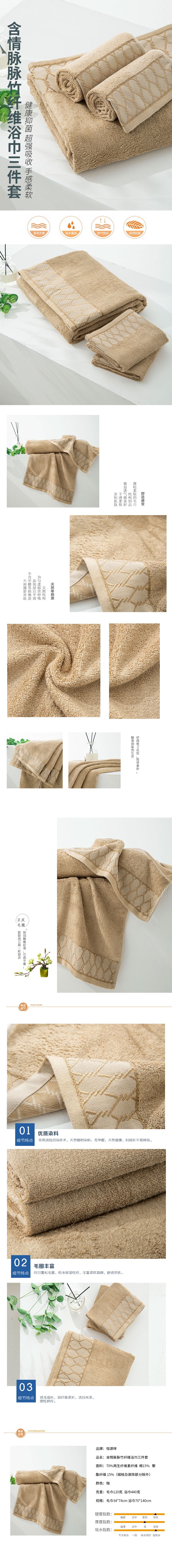 商品名称:恒源祥含情脉脉竹纤维毛巾浴巾三件套-咖色