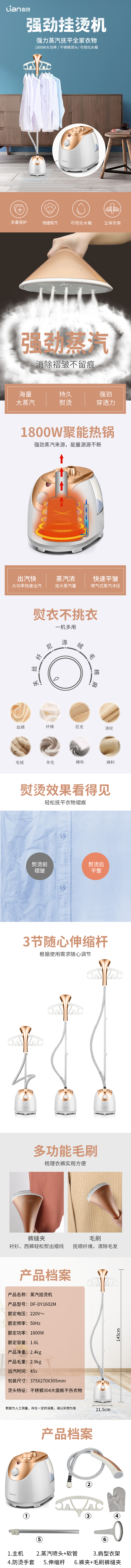 商品名称:Lian/联创1.6升多功能蒸汽挂烫机DF-DY1602M