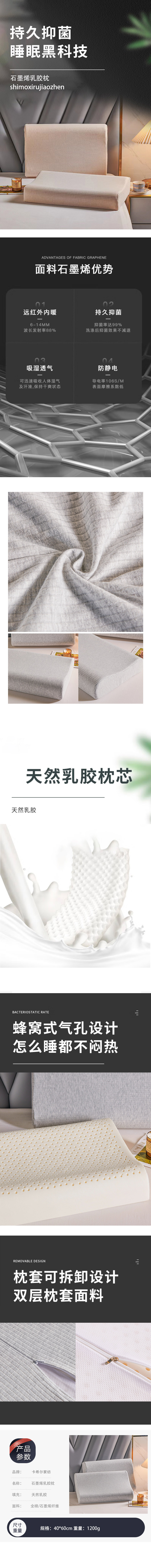 商品名称:(WS)Kaxir/卡希尔石墨烯乳胶枕1只