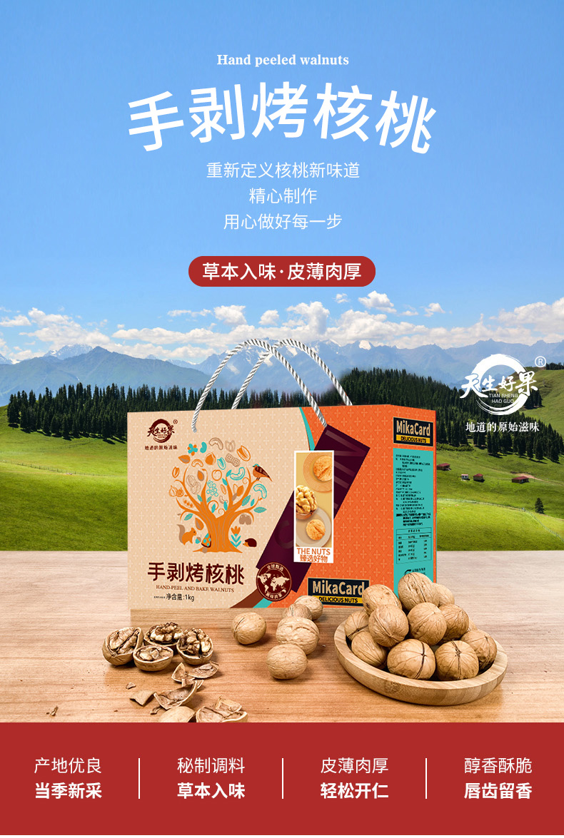 商品名称:天生好果手剥烤核桃礼盒1kg