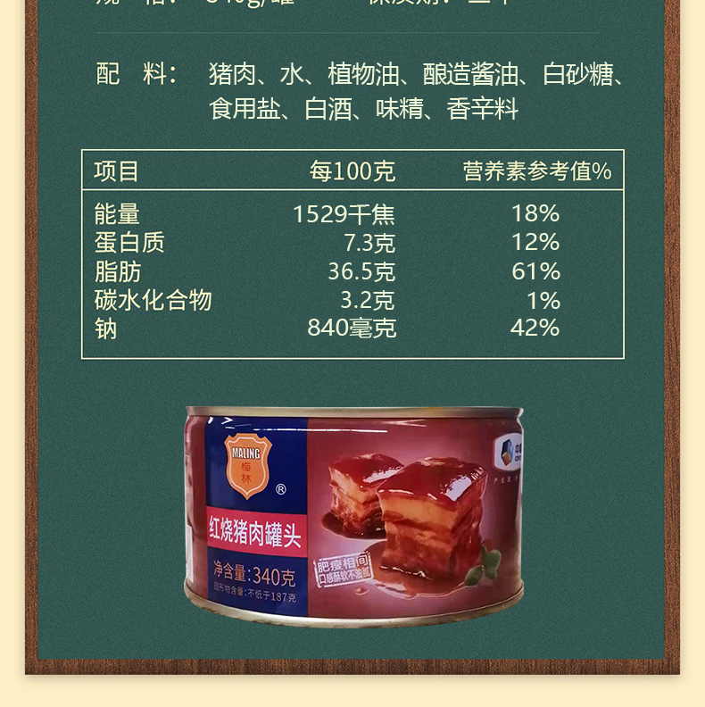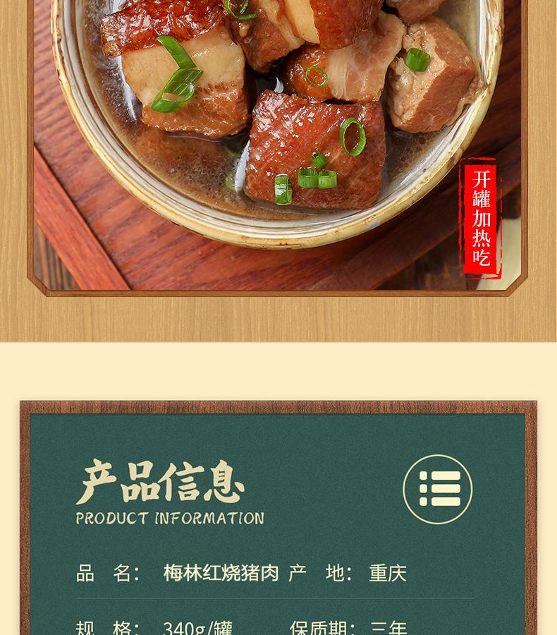 商品名称:中粮梅林红烧猪肉罐头340g*2罐