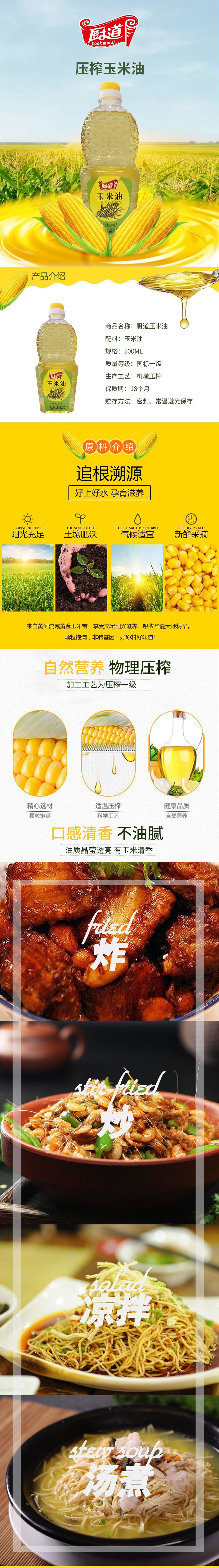 商品名称:Cook moral/厨道压榨玉米油500ml